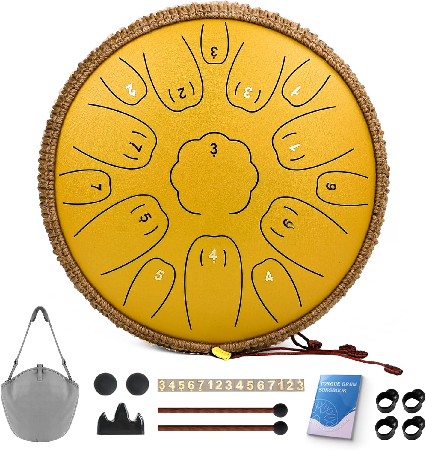 | Included Components | Carry Bag, Drum Mallets, Finger Picks, Music Book, Steel Tongue Drum |