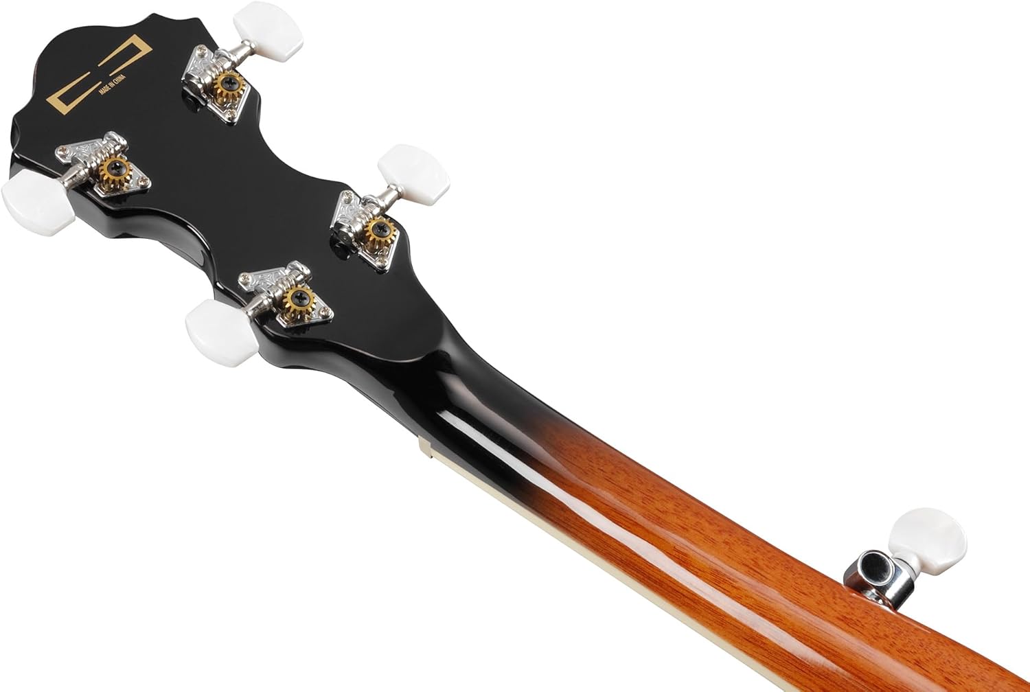 The Ibanez B50 banjo blends traditional construction with expressive tonewoods for an authentic sound and feel. Featuring a Sapele body, Purpleheart fretboard and bridge, and open-gear tuners, it delivers warmth, clarity, and charm in both look and tone. A great choice for players seeking a responsive and stylish banjo. Body Shape: Banjo body Back & Sides: Sapele back & Sapele sides Neck: B Okoume neck Fretboard: Purpleheart fretboard Bridge: Purpleheart bridge Inlay: White dot inlay Tuning Machine: Chrome Open Gear tuners Number of Frets: 22 Saddle Material: Purpleheart String Gauge: .011/.013/.016/.026/.010 String Space: 14.5mm Factory Tuning: 1D, 2B, 3G, 4D, 5G Neck Dimensions: Scale: 670mm/26.4" Width: 32mm at NUT Width: 46mm at 14F Thickness: 21mm at 1F Thickness: 22mm at 7F Radius: Flat Body Dimensions: Length: 13 1/8" Width: 13 1/8" Austin Bazaar makes it easy to start playing by adding essential accessories. This bundle contains a gig bag to protect your guitar during travel, a tuner to keep your instrument in tune, a strap for comfortable playing, extra strings and picks for future use, and an Austin Bazaar polishing cloth to keep your gear in mint condition.