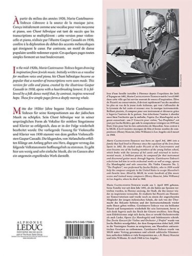 Born into a family of bankers that had lived in Florence since the expulsion of the Jews from Spain in 1492, Mario Castelnuovo-Tedesco (1895-1968) studied under Pizzetti at the city’s Conservatoire. He soon became one of the leading members of the young Italian school, which broke with the tyranny of bel canto to return to the instrumental tradition of the Italian masters from the Baroque era. In 1928, Amédée-Landély Hettich, a vocal teacher in Paris, asked Castelnuovo-Tedesco to write a vocalise for the Répertoire moderne de Vocalises-Études, the publication of which he was supervising at Leduc. Castelnuovo-Tedesco’s contribution,entitled Vocalise-Étude for Medium Voice, became so popular that it was immediately transcribed several times over. The present adaptation for cello and piano, was created, with prior consent from the composer, by the famous Catalan cellist Gaspar Cassadó in 1930. The works opens with a poignant lamento that grieves the tragic fate of the Jewish people; it is followed by a folk dance whose “brisk and stubborn” movement marks, with panache, an imperious refusal to yield to resignation. The composer adopted the same proactive stance himself when in 1939, fleeing Mussolini’s antisemitic laws, he decided to emigrate to the United States, a land of refuge to which he would remain faithful until his death some thirty years later. Read more