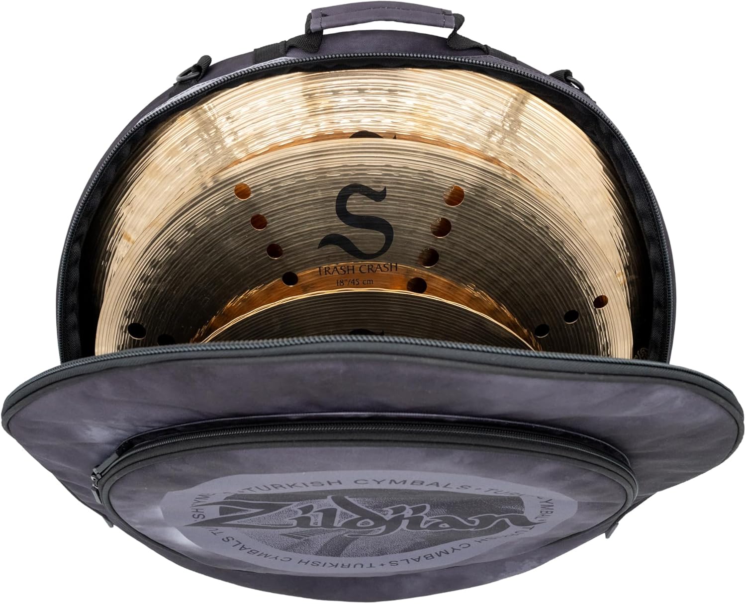 A durable, functional cymbal bag designed specifically for student drummers. Perfect for going to school, lessons or practice, this bag features heavy-duty backpack straps, a removable, adjustable shoulder strap and a front zipper pocket that includes space for hihats, a practice pad and clutch. Made from durable nylon fabric, this bag is weather resistant and has a non-slip bottom. The interior cymbal pocket has a custom molded bottom lining to prevent cymbals from wearing through over time. This stylish cymbal bag offers premium function for the student drummer.