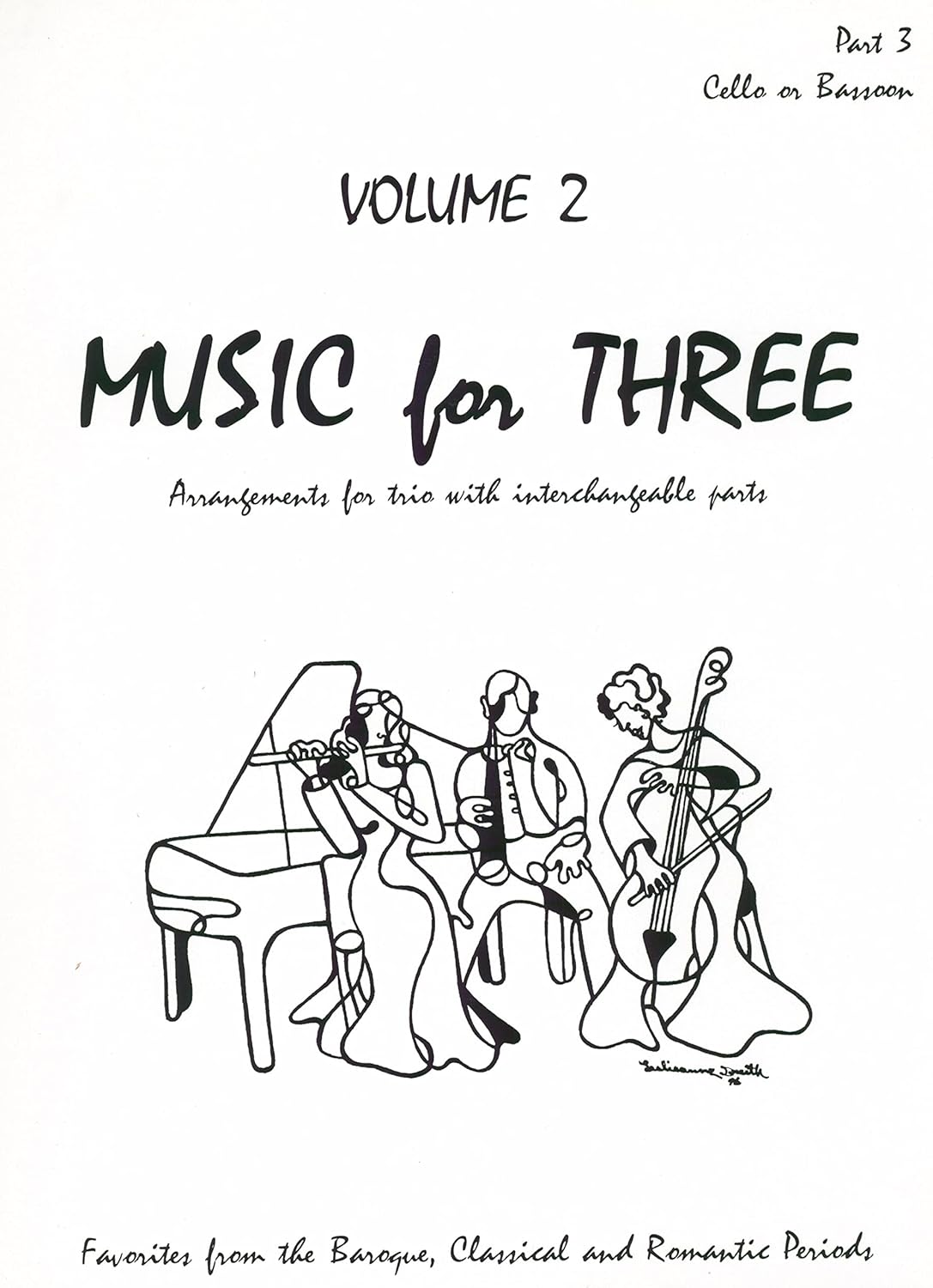 Set includes 3 parts (50211, 50222, 50231) Other Parts Available: Part 1 Flute or Oboe or Violin [50211] Part 1 Clarinet in Bb [50213] Part 2 Flute or Oboe or Violin [50221] Part 2 Viola [50222] Part 2 Clarinet in Bb [50223] Part 3 Cello or Bassoon [50231] Keyboard or Guitar [50240] Score (parts 1-3 in C) [50299] Table of Contents: Repertoire List - Volume 2 Allegro, Andante, Allegro assai from Brandenburg Concerto #2 in F Major (Bach) Little Fugue (Bach) March (Bach) March in D Major from the Anna Magdalene Bach Notebook (Bach) Rondeau from Orchestral Suite #2 in B Minor (Bach) Ode to Joy from Symphony #9 (Beethoven) Hungarian Dance #5 (Brahms) Variations on a Theme of Haydn (St. Anthony Chorale & Sicilienne) Op. 56 (Brahms) Nocturne from Op. 9 #2 for piano (Chopin) Humoresque from Op. 101, #7 (Dvorak) Panis Angelicus from Messe Solonnelle, Op. 12 (Franck) Tambourin (Gossec) Gavotte from Holberg Suite, Op. 40 (Grieg) Fireworks Music - Bourree, La Rejouissance, Minuet (Handel) Oboe Concerto in G Minor - Sarbande, Allegro(Handel) Allegro (Loeillet) A Midsummer Night's Dream - Nocturne, Wedding March (Mendelssohn) Ave Verum Corpus from K. 618 (Mozart) Rondo alla turca from Piano Sonata in A Major, K. 331 (Mozart) Rondeau from INcidental Music to Abdelazer (Purcell) Trumpet Tune (Purcell) When I Am Laid in Earth from Dido and Aeneas (Purcell) Scheherazade Theme (Rimsky-Korsakov) Serenade from Schwanengesang, #4 (Schubert) Vivace from Sonata in F Major for flute (Telemann) The Four Seasons - Excerpts (Vivaldi) -Allegro from Violin Concerto in E Major, Op. 8 #1 - "Spring" (Vivaldi) -Allegro from Violin Concerto in F Major, Op. 8 #3 - "Autumn" (Vivaldi) -Danza Pastorale from Violin Concerto in E Major, Op. 8 #1 - "Spring" (Vivaldi) Read more