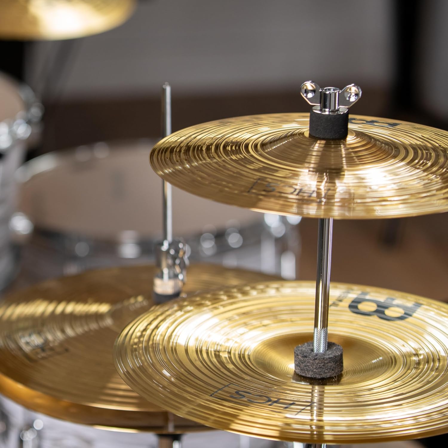 Outfit your kit with the HCS-FX stack complete with a FREE cymbal stacker from MEINL! Included is a 10” splash and a 12” china that are chock-full of sound and ready for easy placement on your set along with a free stacker attachment that requires no extra stand to mount. The powerful 12” HCS china gives you a cutting, quick, and trashy response that cracks through the music. Its lightweight is an added bonus for keeping the cymbal balanced when placed on the bottom of the stack. The 10” HCS splash is great for quick accents and splash fills with its fast decay. It expands your sound and performs well with other MEINL HCS cymbals. The size is an advantage for players looking to add unique sound options without rearranging their kit to accommodate a larger cymbal. HCS cymbals from MEINL are crafted in Germany with a durable brass alloy that holds up to the force of sticks while maintaining excellent musical pitches and tones. This effect stack delivers all of the comfort players look for when piggybacking cymbals. The FREE stacker puts 5.5” of clearance between the two cymbals, allowing you to move your sticks freely without catching one cymbal or the other by mistake. Simply thread the attachment on your existing cymbal stand until finger tight and it holds securely, even for the harder hitters. The end result is a ferocious, professional look with a variety of sonic alternatives.