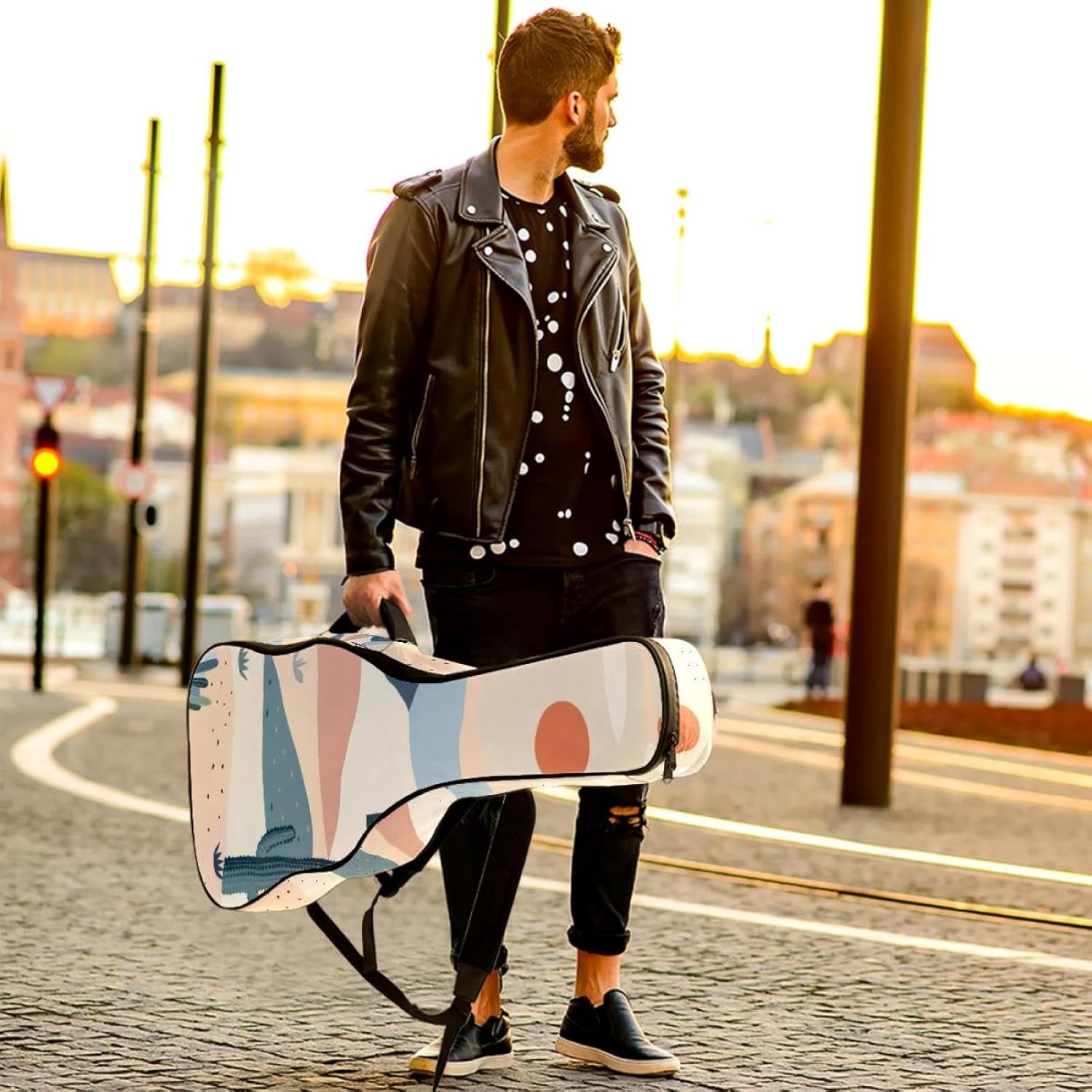 Specifications:Material: waterproof Oxford and waterproof zipper;Size: 42.9’’ x 16.9’’ x 4.7’’, perfect for 40'' 41'' 42'' guitar;Weight:36oz/1020g, lightweight;Color: Multi-color.Features:1. Adjustable backpack shoulder straps and padded side carry handle for more pleasant carrying choices.2. 10mm thick sponge padding inside provide protection for your musical instrument; and fixed Velcro above neck and body keep your acoustic guitar bag safer.3. This guitar bag comes with back hanger loop can be hung on the wall. Save more space when not in use.4. Two pockets for storage convenience, 1 large capacity pocket on outside back and 1 small pocket on the inside neck.5. Cute printed guitar gig bag guitar case backpack, ideal as a gift for your relatives or friends who love music when birthday, Thanksgiving, Christmas, holidays, and other special events.