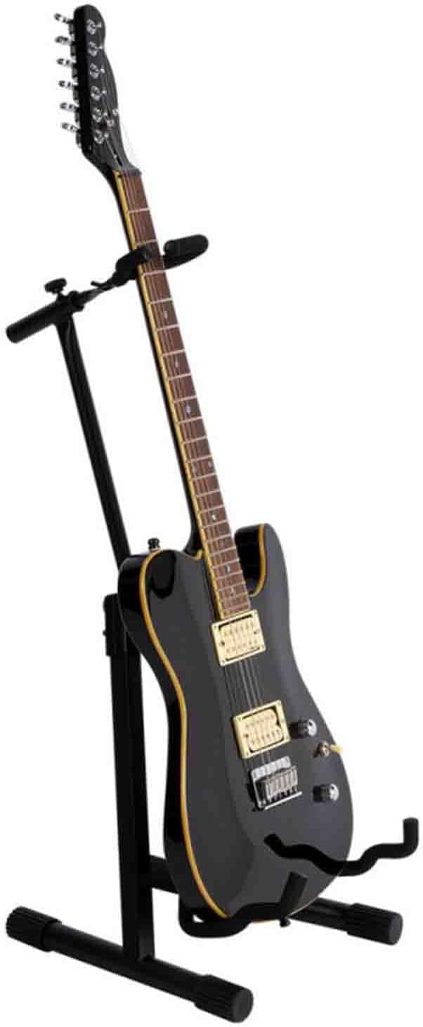 On Stage GS7465 Pro Flip It A-Frame Guitar Stand is easily the safest guitar stand on the market today! Features include the convenience of an A-Frame with the safety of our patented Flip-It! top yoke. The GS7465B features heavy-duty square tubing, velveteen rubber and a unit-construction design which means that there are no parts to lose. This stand is built with the ability of holding both acoustic and electric guitars. Upper yoke stores between the legs for travel or storage.