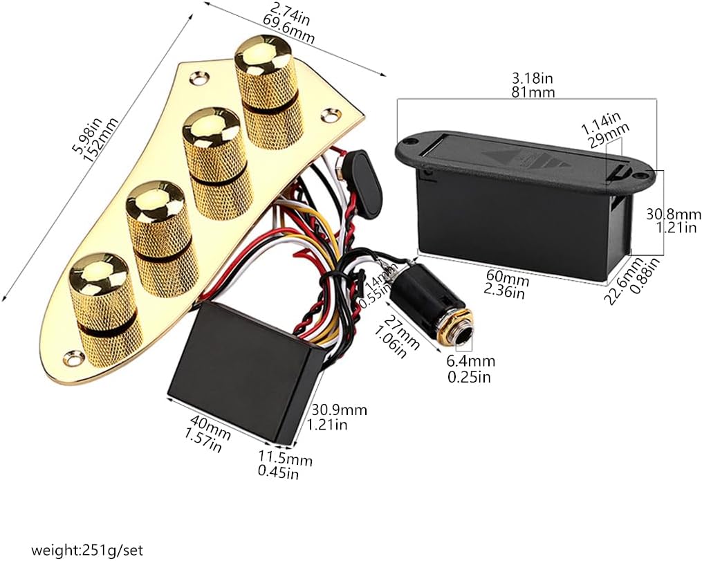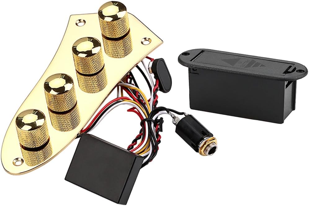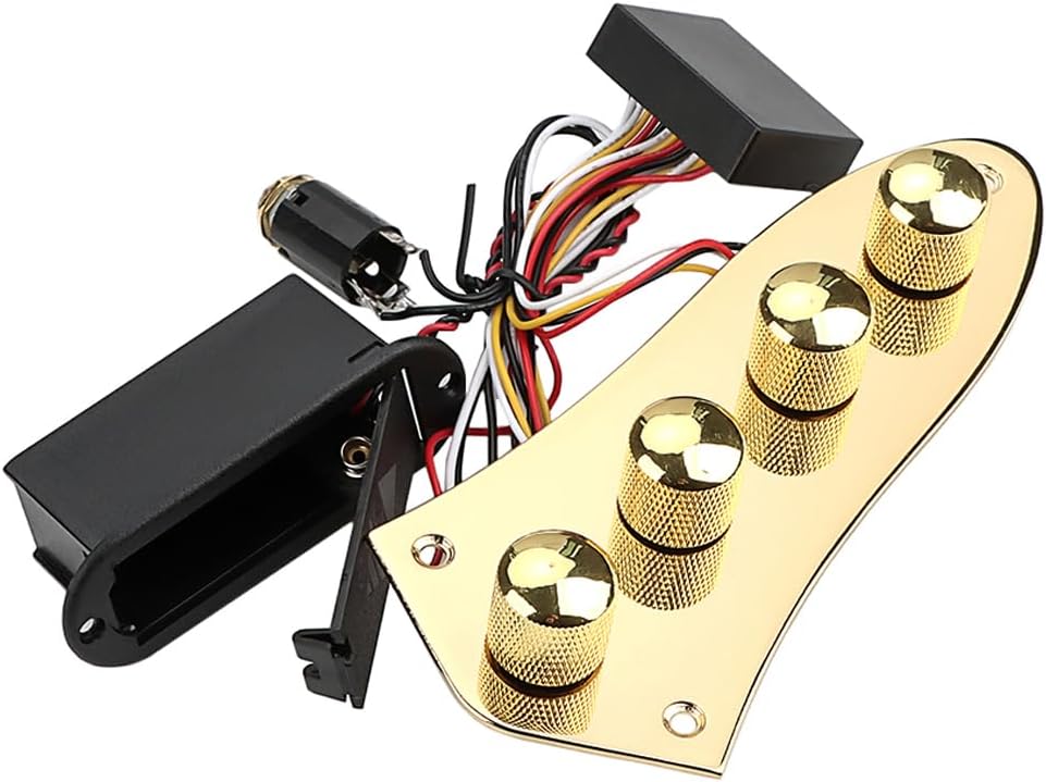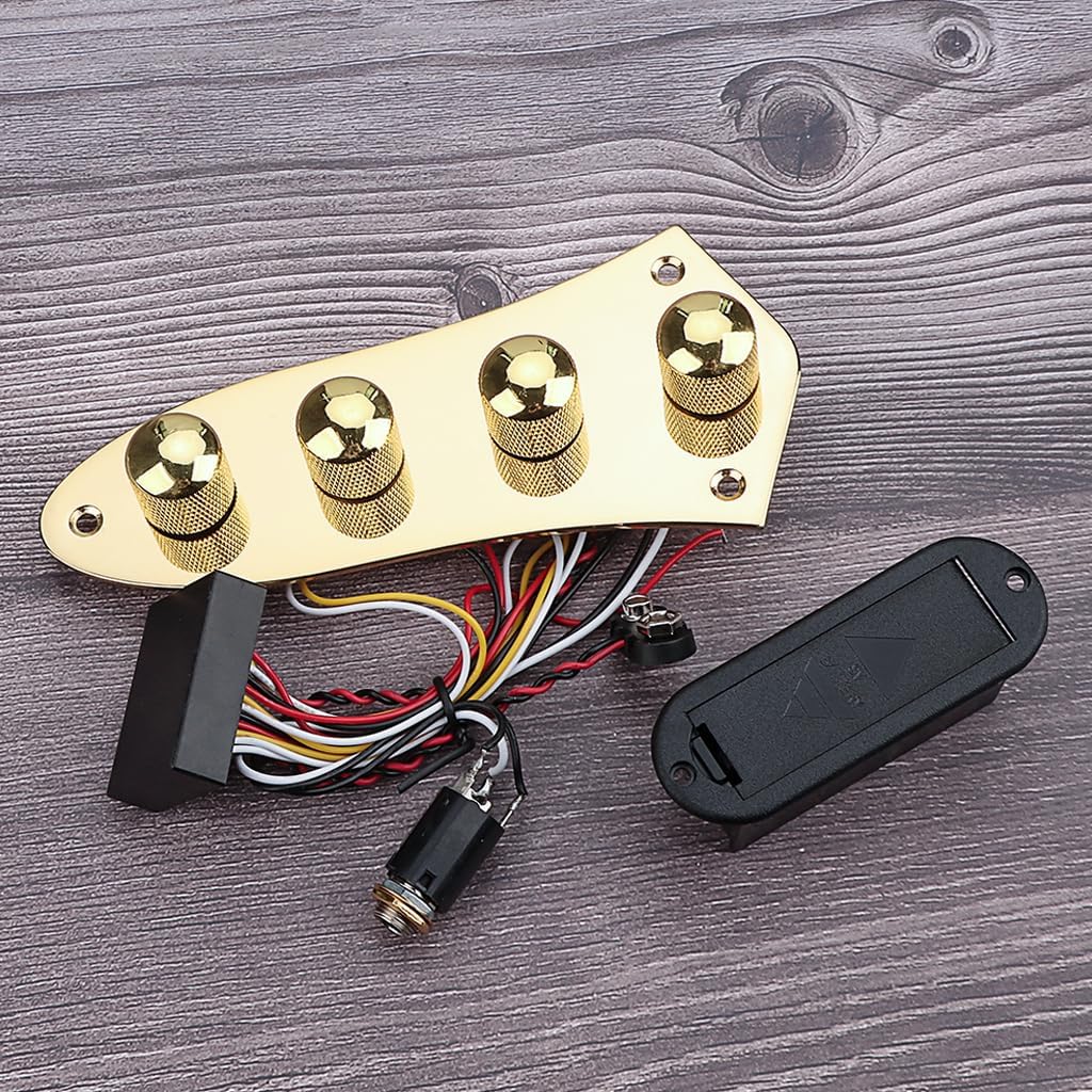 Bass Guitar Prewired Control Plate Loaded Control Board with Wiring Harness Fit for Jazz Bass Guitar Replacement Parts,Come with Metal Knobs,Potentiometers,Crcuit Set for Electric Guitar Preamp