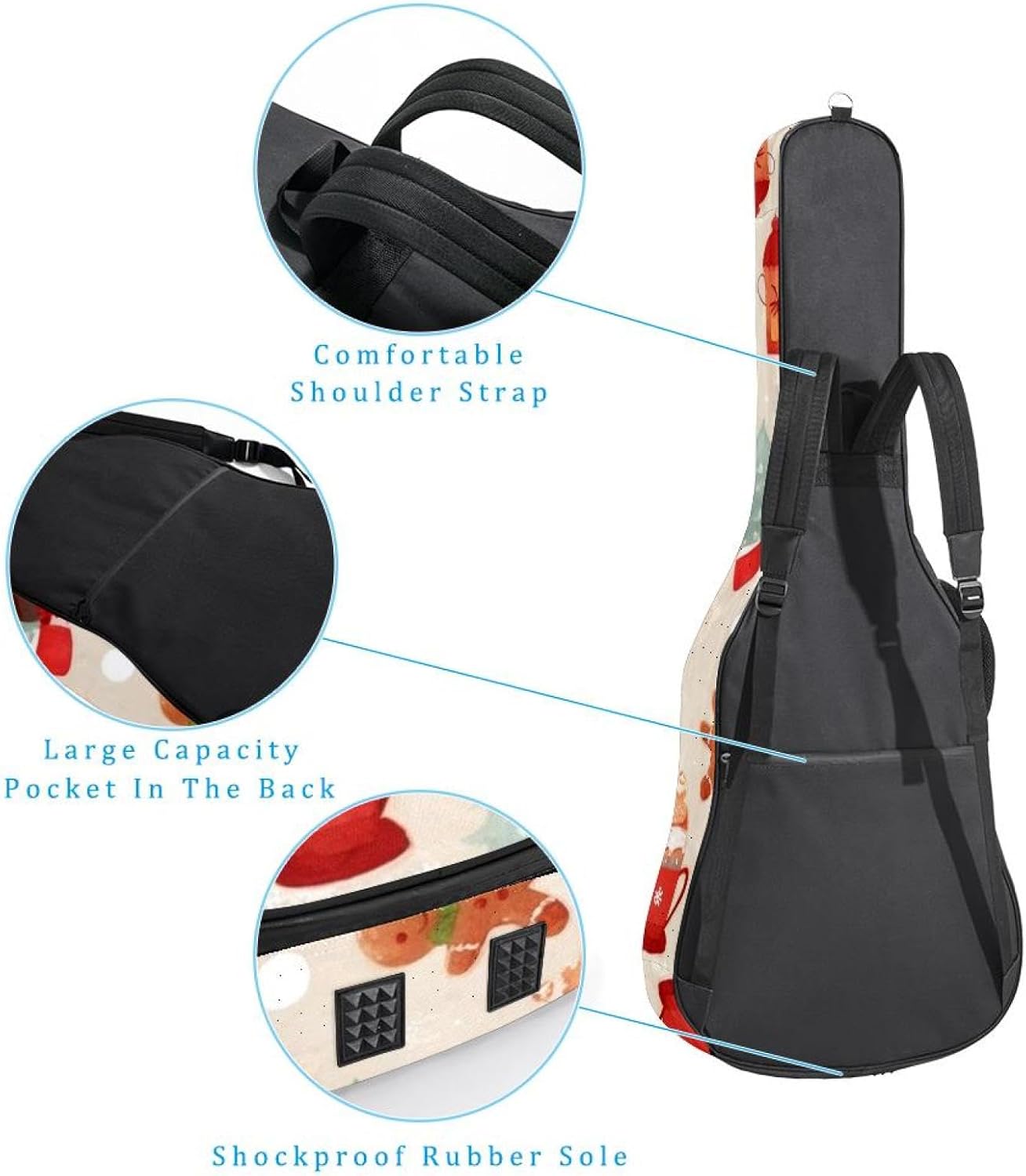 This versatile guitar gig bag is the perfect accessory for any musician needing reliable protection and easy portability for their instrument.With dimensions of 42.9x16.9x4.7 inches, this gig bag accommodates a wide range of guitars, including electric, bass, acoustic, and classical. The waterproof Oxford fabric construction ensures your guitar remains protected from the elements, while the heavy-duty rubber base shields it from everyday knocks and bumps.Inside, the bag features a generously padded design with adjustable neck support to secure your guitar during transit. The smooth lining and anti-scratch fabric offer additional peace of mind, knowing your guitar is safe from scratches and damage. Practical storage solutions include two spacious pockets for neatly organizing essential guitar accessories, ensuring quick access when needed.Whether you're heading to a gig, a rehearsal, or simply storing your instrument, this guitar case offers a practical and reliable solution for musicians of all ages and skill levels.