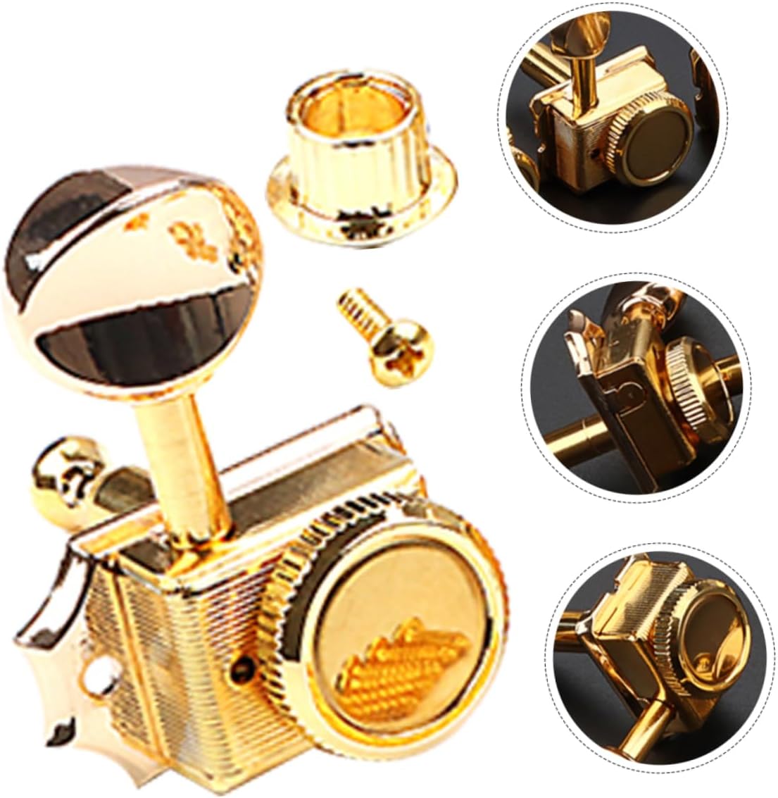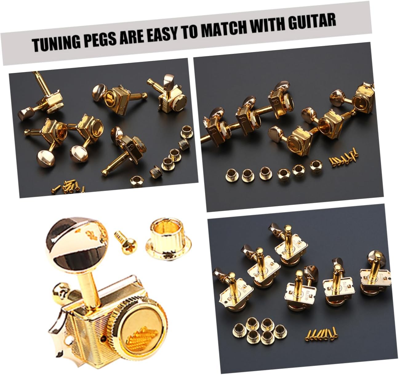 Package List 6 x guitar pegs 1 x set of accessories Features - Size: 4.00X2.80X2.42cm/1.57X1.10X0.95in guitar tuning peg - Color: Golden guitar pegs -Material:Metal, plastic guitar tuning tool -The sleek and minimalist design of the product adds a touch of aesthetics to any performance or practice guitar tool kit. -The locking mechanism of the tuning pegs enhances safety and reliability, ensuring that the strings stay in tune and the instrument remains secure during use tuning peg for acoustic guitar. -Made of metal and plastic that ensure durability and longevity, making it a practical choice for musicians guitar tuning peg replacement. -The tuning pegs are a versatile accessory for musicians of all levels and styles guitar parts. -The tuning pegs are easy to match with guitar, while also ensuring that it is comfortable and convenient to use electric guitar .Goods Informationguitar pegs The sleek and minimalist design of these tuning machine heads is aesthetically pleasing and with aesthetics of your guitar well.acoustic guitar tuning The tuning machine heads are made from metal and plastic materials, ensuring its longevity and reliability
