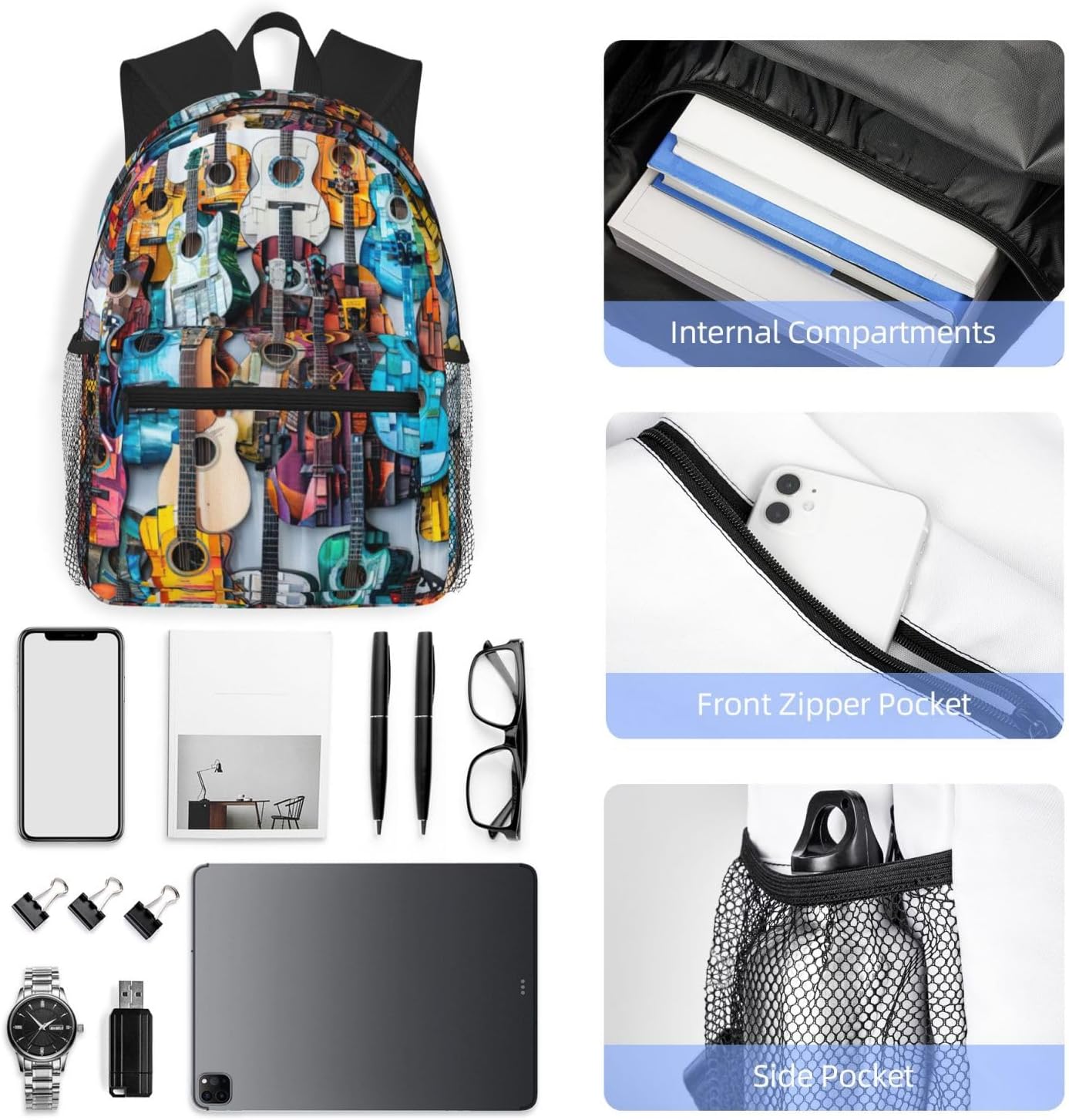 Made from high-quality 600D oxford fabric, the Color Acoustic and Guitars print travel backpack combines both strength and lightness. Its water-resistant properties help safeguard your items against unexpected weather, offering added protection from light rain. Despite its robust construction, the backpack maintains a sleek, lightweight design that won't weigh you down. The durable material stands up to frequent use, while its minimalistic yet modern design ensures it remains stylish through every outing, making it an ideal option for anyone on the go.