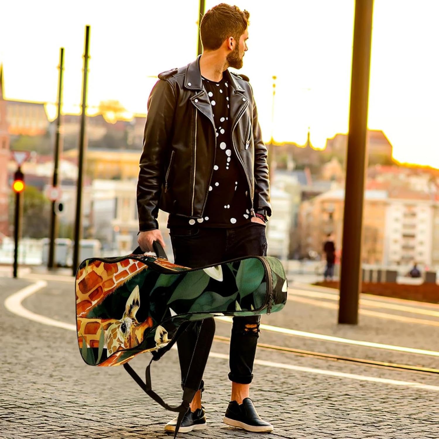 Specifications:Material: waterproof Oxford and waterproof zipper;Size: 42.9’’ x 16.9’’ x 4.7’’, perfect for 40'' 41'' 42'' guitar;Weight:36oz/1020g, lightweight;Color: Multi-color.Features:1. Adjustable backpack shoulder straps and padded side carry handle for more pleasant carrying choices.2. 10mm thick sponge padding inside provide protection for your musical instrument; and fixed Velcro above neck and body keep your acoustic guitar bag safer.3. This guitar bag comes with back hanger loop can be hung on the wall. Save more space when not in use.4. Two pockets for storage convenience, 1 large capacity pocket on outside back and 1 small pocket on the inside neck.5. Cute printed guitar gig bag guitar case backpack, ideal as a gift for your relatives or friends who love music when birthday, Thanksgiving, Christmas, holidays, and other special events.