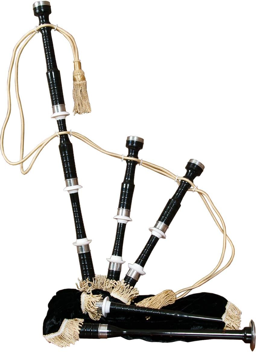 Kit Includes: High Quality Full Size Bagpipes Set w/ Black Cover & Rexine Bag, Extras Bagpipes Nylon Bag Black sheesham. Black velvet cover with Rexine bag,turned nickeled ferrules and sole. Includes 2 cane pipe chanter reeds, 1 set of aluminum drone reeds with carbon fiber tongues and hemp. Approximately 40" x 20". The bagpipe is one of the oldest instruments known to man, but it is not originally Scottish, or even British, but was brought across Europe from it origins in the Middle East. Features: Full Size Sheesham Black Finish Bagpipes Measures Approximately: 40" x 20" 2 cane pipe chanter reeds & hemp 1 set of aluminum drone reeds w/ carbon fiber tongues Shipped insured! Brand New!