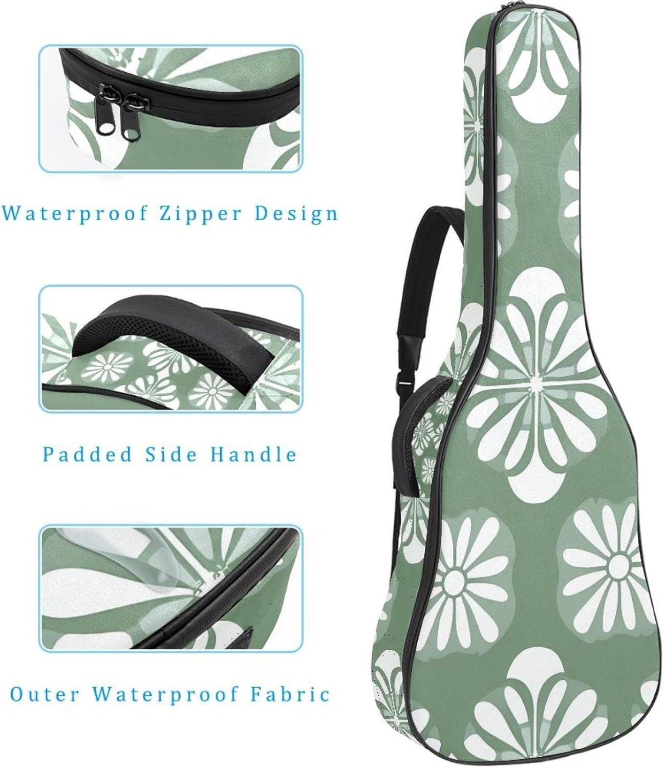Give your valuable guitar the premium protection it deserves. Our Cute Printed Guitar Gig Bag is engineered for the modern musician who demands both security and convenience. Whether you're heading to a gig, a practice session, or on a short trip, this bag ensures your instrument arrives in perfect condition, ready to play.Constructed from durable, waterproof Oxford cloth, this bag stands up to the elements and the test of time. The interior is a sanctuary for your guitar, featuring ultra-thick padded sidewalls and a soft, anti-scratch lining that cradles your instrument, preventing scratches and damage. The heavy-duty rubber base acts as a shield against everyday bumps and allows for stable placement on any surface.Organization is effortless with multiple dedicated compartments. Two main storage pockets keep all your essential accessories—like a foldable music stand, tuner, picks, cables, and extra strings—neatly sorted and easily accessible. Never fumble for your tablet or sheet music again; the specially designed back pocket keeps them safe and separate.For a perfect, secure fit, the adjustable neck support and internal Velcro strap ensure your guitar does not shift around inside the bag, providing peace of mind with every carry.Care Instructions: To preserve the quality and appearance of your gig bag, please do not machine wash. Simply wipe clean with a damp cloth to remove any dirt or stains.