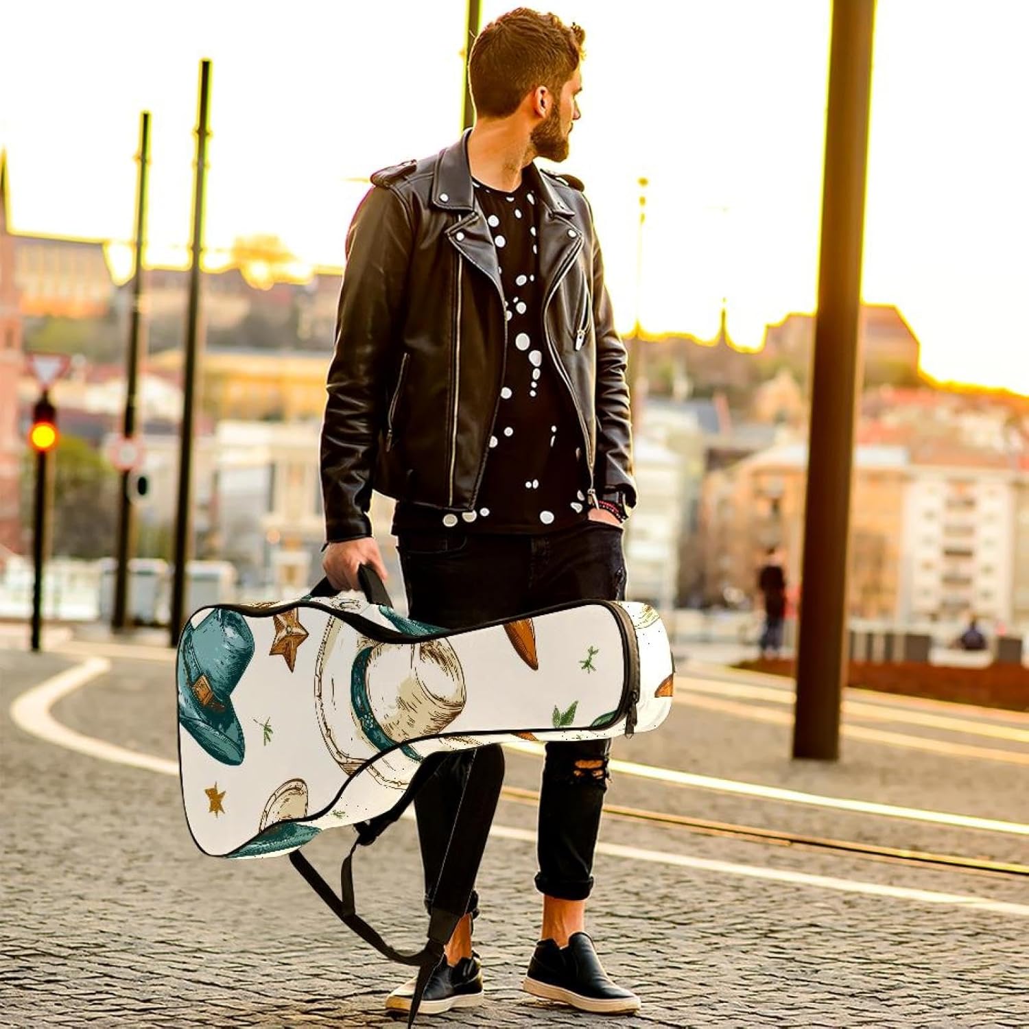 Give your valuable guitar the premium protection it deserves. Our Cute Printed Guitar Gig Bag is engineered for the modern musician who demands both security and convenience. Whether you're heading to a gig, a practice session, or on a short trip, this bag ensures your instrument arrives in perfect condition, ready to play.Constructed from durable, waterproof Oxford cloth, this bag stands up to the elements and the test of time. The interior is a sanctuary for your guitar, featuring ultra-thick padded sidewalls and a soft, anti-scratch lining that cradles your instrument, preventing scratches and damage. The heavy-duty rubber base acts as a shield against everyday bumps and allows for stable placement on any surface.Organization is effortless with multiple dedicated compartments. Two main storage pockets keep all your essential accessories—like a foldable music stand, tuner, picks, cables, and extra strings—neatly sorted and easily accessible. Never fumble for your tablet or sheet music again; the specially designed back pocket keeps them safe and separate.For a perfect, secure fit, the adjustable neck support and internal Velcro strap ensure your guitar does not shift around inside the bag, providing peace of mind with every carry.Care Instructions: To preserve the quality and appearance of your gig bag, please do not machine wash. Simply wipe clean with a damp cloth to remove any dirt or stains.