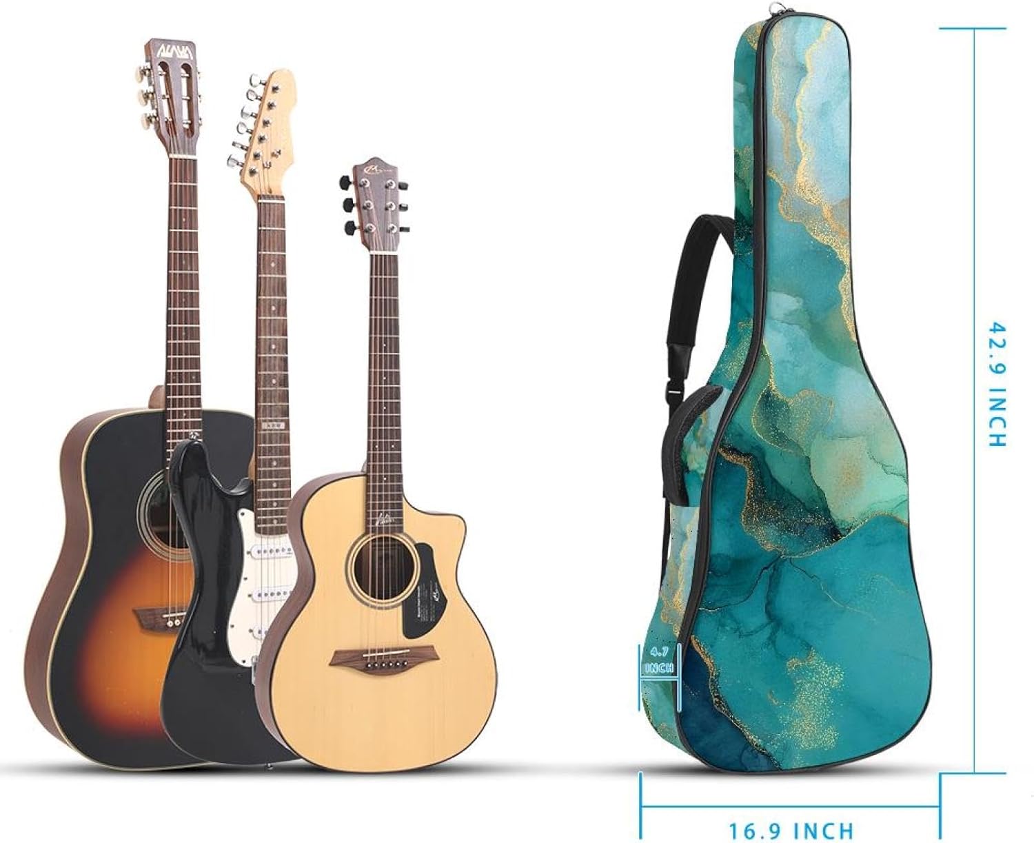 Give your valuable guitar the premium protection it deserves. Our Cute Printed Guitar Gig Bag is engineered for the modern musician who demands both security and convenience. Whether you're heading to a gig, a practice session, or on a short trip, this bag ensures your instrument arrives in perfect condition, ready to play.Constructed from durable, waterproof Oxford cloth, this bag stands up to the elements and the test of time. The interior is a sanctuary for your guitar, featuring ultra-thick padded sidewalls and a soft, anti-scratch lining that cradles your instrument, preventing scratches and damage. The heavy-duty rubber base acts as a shield against everyday bumps and allows for stable placement on any surface.Organization is effortless with multiple dedicated compartments. Two main storage pockets keep all your essential accessories—like a foldable music stand, tuner, picks, cables, and extra strings—neatly sorted and easily accessible. Never fumble for your tablet or sheet music again; the specially designed back pocket keeps them safe and separate.For a perfect, secure fit, the adjustable neck support and internal Velcro strap ensure your guitar does not shift around inside the bag, providing peace of mind with every carry.Care Instructions: To preserve the quality and appearance of your gig bag, please do not machine wash. Simply wipe clean with a damp cloth to remove any dirt or stains.