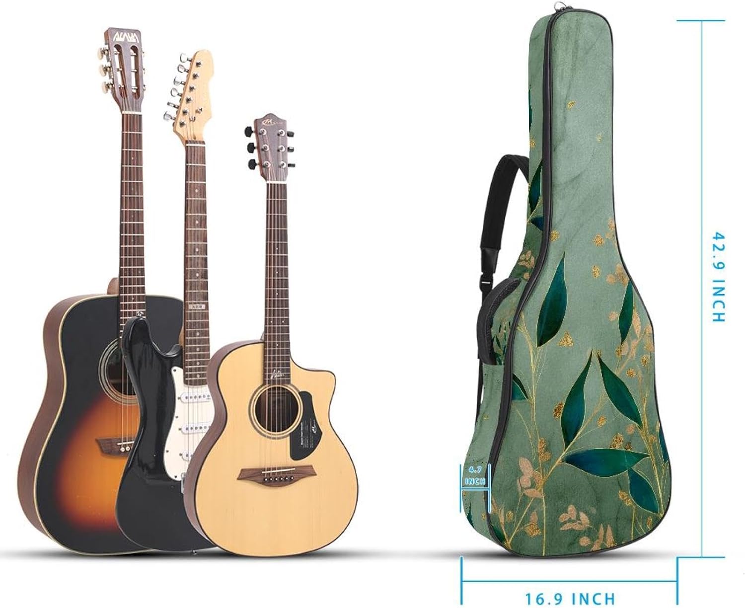 Give your valuable guitar the premium protection it deserves. Our Cute Printed Guitar Gig Bag is engineered for the modern musician who demands both security and convenience. Whether you're heading to a gig, a practice session, or on a short trip, this bag ensures your instrument arrives in perfect condition, ready to play.Constructed from durable, waterproof Oxford cloth, this bag stands up to the elements and the test of time. The interior is a sanctuary for your guitar, featuring ultra-thick padded sidewalls and a soft, anti-scratch lining that cradles your instrument, preventing scratches and damage. The heavy-duty rubber base acts as a shield against everyday bumps and allows for stable placement on any surface.Organization is effortless with multiple dedicated compartments. Two main storage pockets keep all your essential accessories—like a foldable music stand, tuner, picks, cables, and extra strings—neatly sorted and easily accessible. Never fumble for your tablet or sheet music again; the specially designed back pocket keeps them safe and separate.For a perfect, secure fit, the adjustable neck support and internal Velcro strap ensure your guitar does not shift around inside the bag, providing peace of mind with every carry.Care Instructions: To preserve the quality and appearance of your gig bag, please do not machine wash. Simply wipe clean with a damp cloth to remove any dirt or stains.