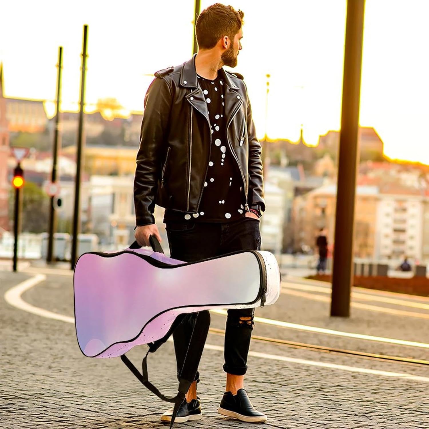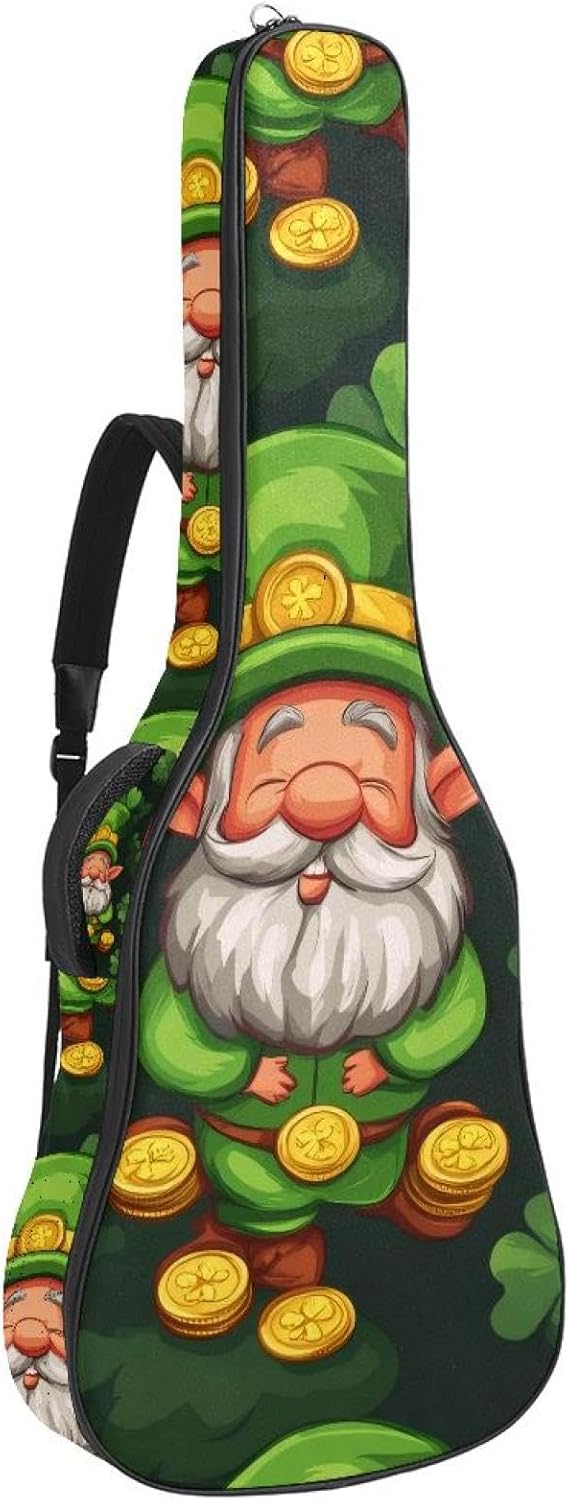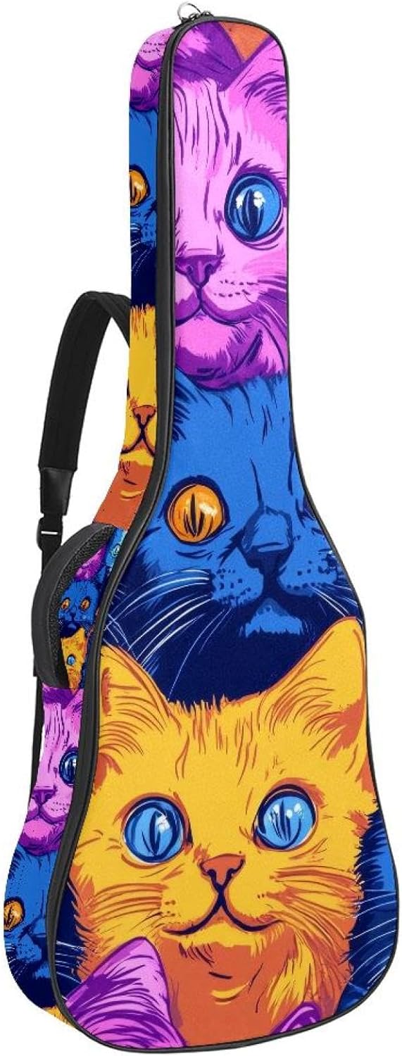 Give your valuable guitar the premium protection it deserves. Our Cute Printed Guitar Gig Bag is engineered for the modern musician who demands both security and convenience. Whether you're heading to a gig, a practice session, or on a short trip, this bag ensures your instrument arrives in perfect condition, ready to play.Constructed from durable, waterproof Oxford cloth, this bag stands up to the elements and the test of time. The interior is a sanctuary for your guitar, featuring ultra-thick padded sidewalls and a soft, anti-scratch lining that cradles your instrument, preventing scratches and damage. The heavy-duty rubber base acts as a shield against everyday bumps and allows for stable placement on any surface.Organization is effortless with multiple dedicated compartments. Two main storage pockets keep all your essential accessories—like a foldable music stand, tuner, picks, cables, and extra strings—neatly sorted and easily accessible. Never fumble for your tablet or sheet music again; the specially designed back pocket keeps them safe and separate.For a perfect, secure fit, the adjustable neck support and internal Velcro strap ensure your guitar does not shift around inside the bag, providing peace of mind with every carry.Care Instructions: To preserve the quality and appearance of your gig bag, please do not machine wash. Simply wipe clean with a damp cloth to remove any dirt or stains.