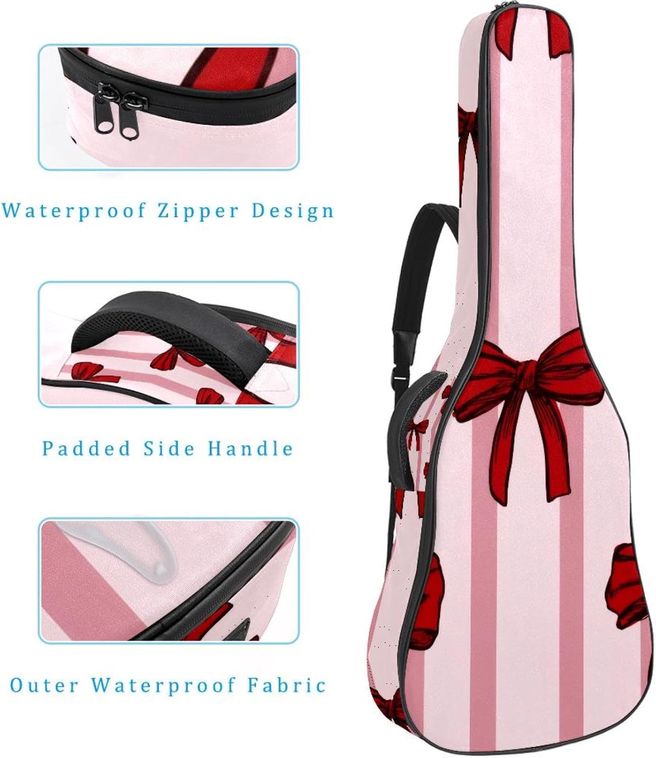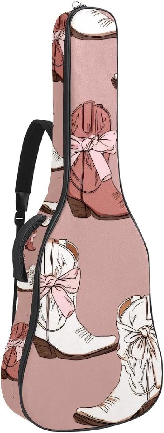 Give your valuable guitar the premium protection it deserves. Our Cute Printed Guitar Gig Bag is engineered for the modern musician who demands both security and convenience. Whether you're heading to a gig, a practice session, or on a short trip, this bag ensures your instrument arrives in perfect condition, ready to play.Constructed from durable, waterproof Oxford cloth, this bag stands up to the elements and the test of time. The interior is a sanctuary for your guitar, featuring ultra-thick padded sidewalls and a soft, anti-scratch lining that cradles your instrument, preventing scratches and damage. The heavy-duty rubber base acts as a shield against everyday bumps and allows for stable placement on any surface.Organization is effortless with multiple dedicated compartments. Two main storage pockets keep all your essential accessories—like a foldable music stand, tuner, picks, cables, and extra strings—neatly sorted and easily accessible. Never fumble for your tablet or sheet music again; the specially designed back pocket keeps them safe and separate.For a perfect, secure fit, the adjustable neck support and internal Velcro strap ensure your guitar does not shift around inside the bag, providing peace of mind with every carry.Care Instructions: To preserve the quality and appearance of your gig bag, please do not machine wash. Simply wipe clean with a damp cloth to remove any dirt or stains.