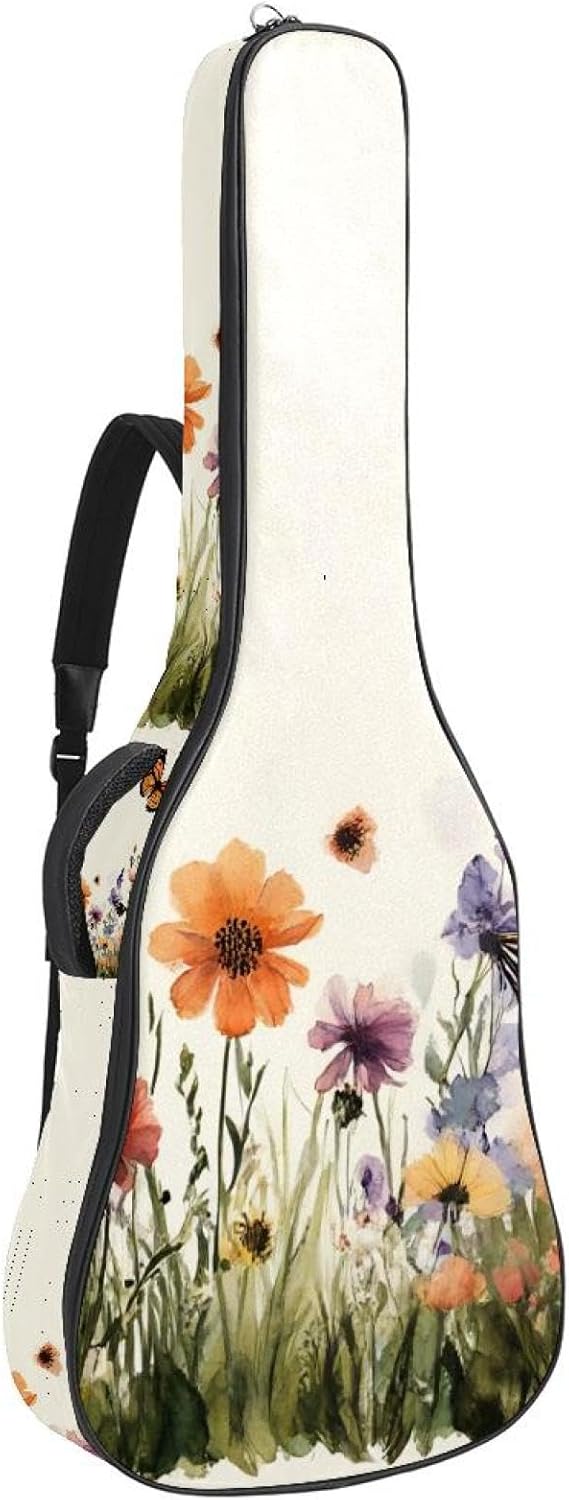 Give your valuable guitar the premium protection it deserves. Our Cute Printed Guitar Gig Bag is engineered for the modern musician who demands both security and convenience. Whether you're heading to a gig, a practice session, or on a short trip, this bag ensures your instrument arrives in perfect condition, ready to play.Constructed from durable, waterproof Oxford cloth, this bag stands up to the elements and the test of time. The interior is a sanctuary for your guitar, featuring ultra-thick padded sidewalls and a soft, anti-scratch lining that cradles your instrument, preventing scratches and damage. The heavy-duty rubber base acts as a shield against everyday bumps and allows for stable placement on any surface.Organization is effortless with multiple dedicated compartments. Two main storage pockets keep all your essential accessories—like a foldable music stand, tuner, picks, cables, and extra strings—neatly sorted and easily accessible. Never fumble for your tablet or sheet music again; the specially designed back pocket keeps them safe and separate.For a perfect, secure fit, the adjustable neck support and internal Velcro strap ensure your guitar does not shift around inside the bag, providing peace of mind with every carry.Care Instructions: To preserve the quality and appearance of your gig bag, please do not machine wash. Simply wipe clean with a damp cloth to remove any dirt or stains.
