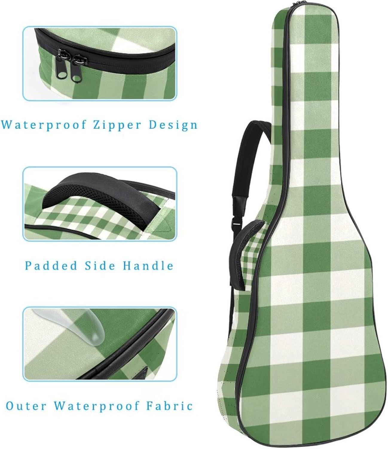 Give your valuable guitar the premium protection it deserves. Our Cute Printed Guitar Gig Bag is engineered for the modern musician who demands both security and convenience. Whether you're heading to a gig, a practice session, or on a short trip, this bag ensures your instrument arrives in perfect condition, ready to play.Constructed from durable, waterproof Oxford cloth, this bag stands up to the elements and the test of time. The interior is a sanctuary for your guitar, featuring ultra-thick padded sidewalls and a soft, anti-scratch lining that cradles your instrument, preventing scratches and damage. The heavy-duty rubber base acts as a shield against everyday bumps and allows for stable placement on any surface.Organization is effortless with multiple dedicated compartments. Two main storage pockets keep all your essential accessories—like a foldable music stand, tuner, picks, cables, and extra strings—neatly sorted and easily accessible. Never fumble for your tablet or sheet music again; the specially designed back pocket keeps them safe and separate.For a perfect, secure fit, the adjustable neck support and internal Velcro strap ensure your guitar does not shift around inside the bag, providing peace of mind with every carry.Care Instructions: To preserve the quality and appearance of your gig bag, please do not machine wash. Simply wipe clean with a damp cloth to remove any dirt or stains.