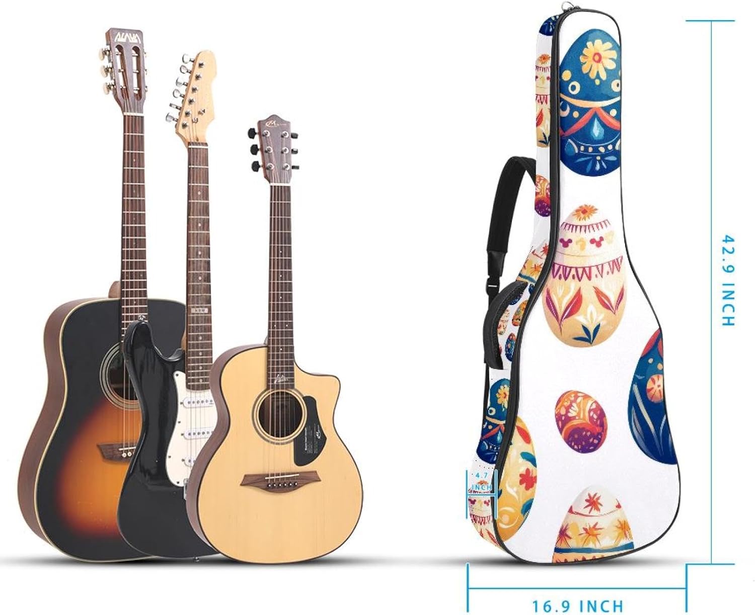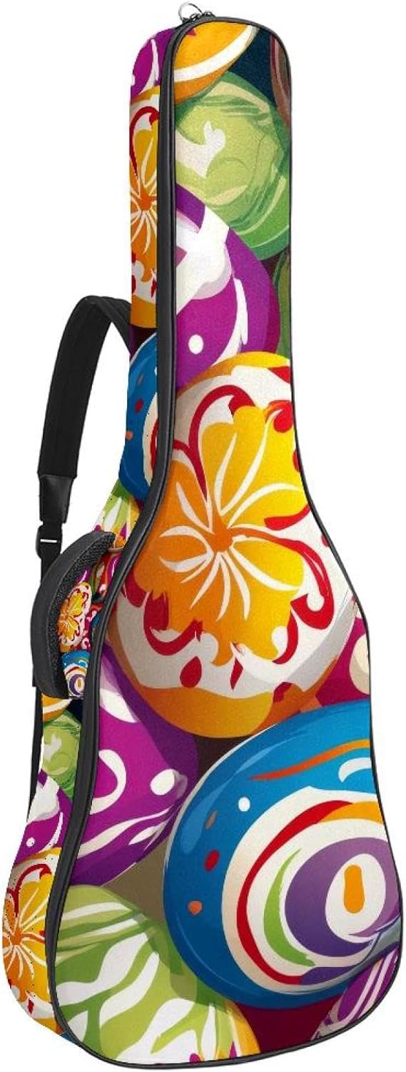 Give your valuable guitar the premium protection it deserves. Our Cute Printed Guitar Gig Bag is engineered for the modern musician who demands both security and convenience. Whether you're heading to a gig, a practice session, or on a short trip, this bag ensures your instrument arrives in perfect condition, ready to play.Constructed from durable, waterproof Oxford cloth, this bag stands up to the elements and the test of time. The interior is a sanctuary for your guitar, featuring ultra-thick padded sidewalls and a soft, anti-scratch lining that cradles your instrument, preventing scratches and damage. The heavy-duty rubber base acts as a shield against everyday bumps and allows for stable placement on any surface.Organization is effortless with multiple dedicated compartments. Two main storage pockets keep all your essential accessories—like a foldable music stand, tuner, picks, cables, and extra strings—neatly sorted and easily accessible. Never fumble for your tablet or sheet music again; the specially designed back pocket keeps them safe and separate.For a perfect, secure fit, the adjustable neck support and internal Velcro strap ensure your guitar does not shift around inside the bag, providing peace of mind with every carry.Care Instructions: To preserve the quality and appearance of your gig bag, please do not machine wash. Simply wipe clean with a damp cloth to remove any dirt or stains.