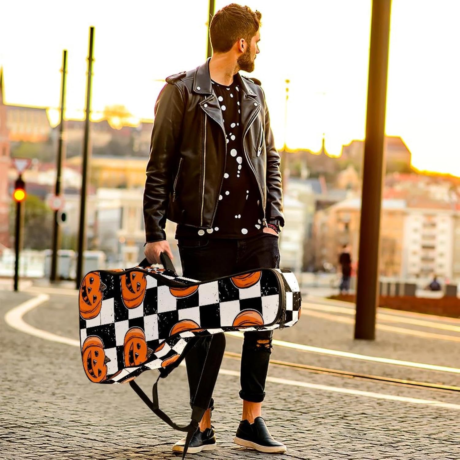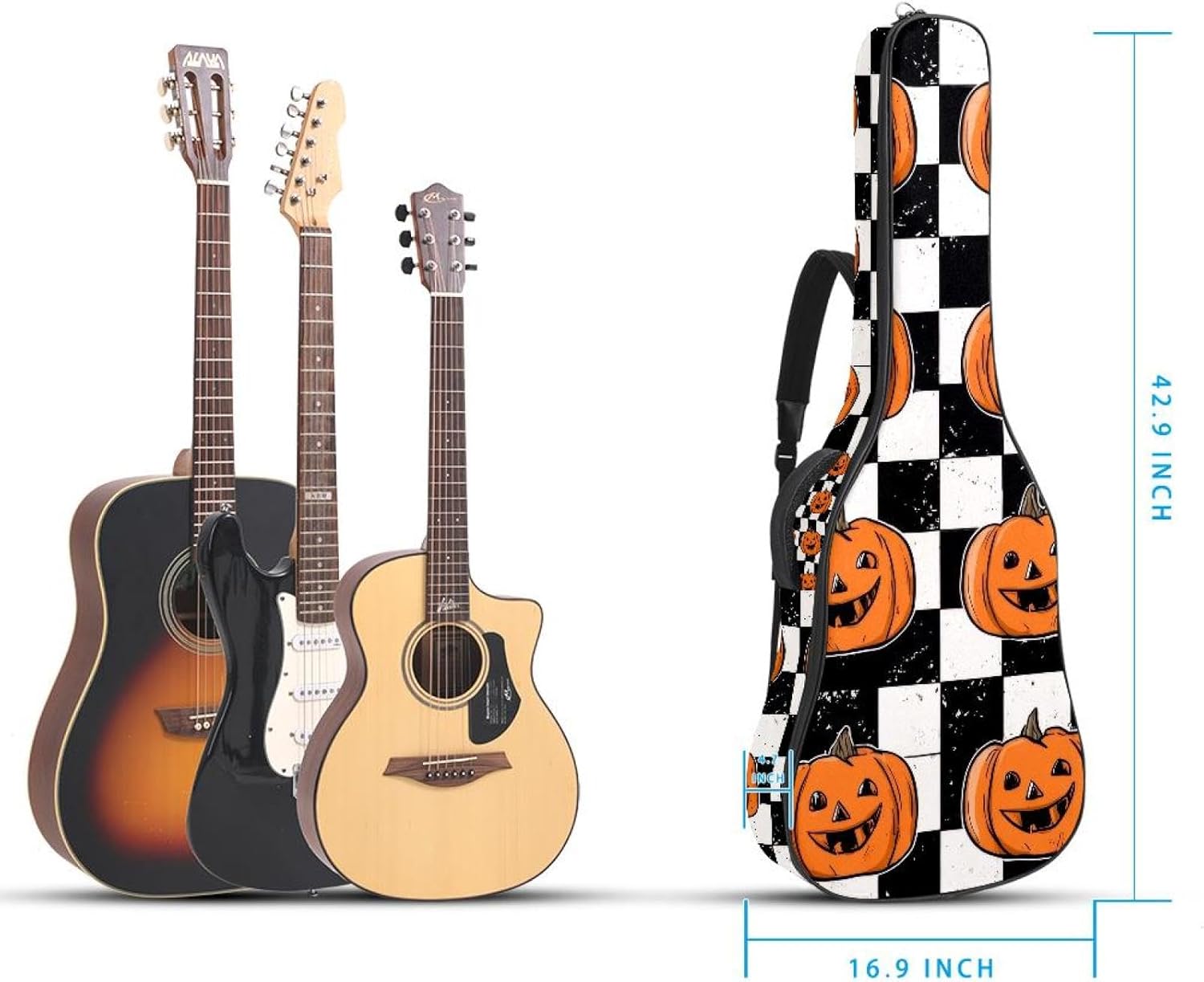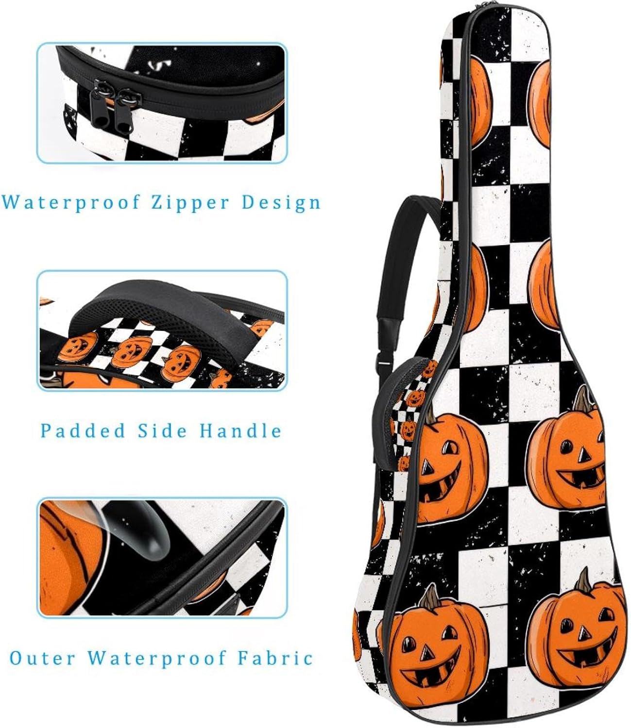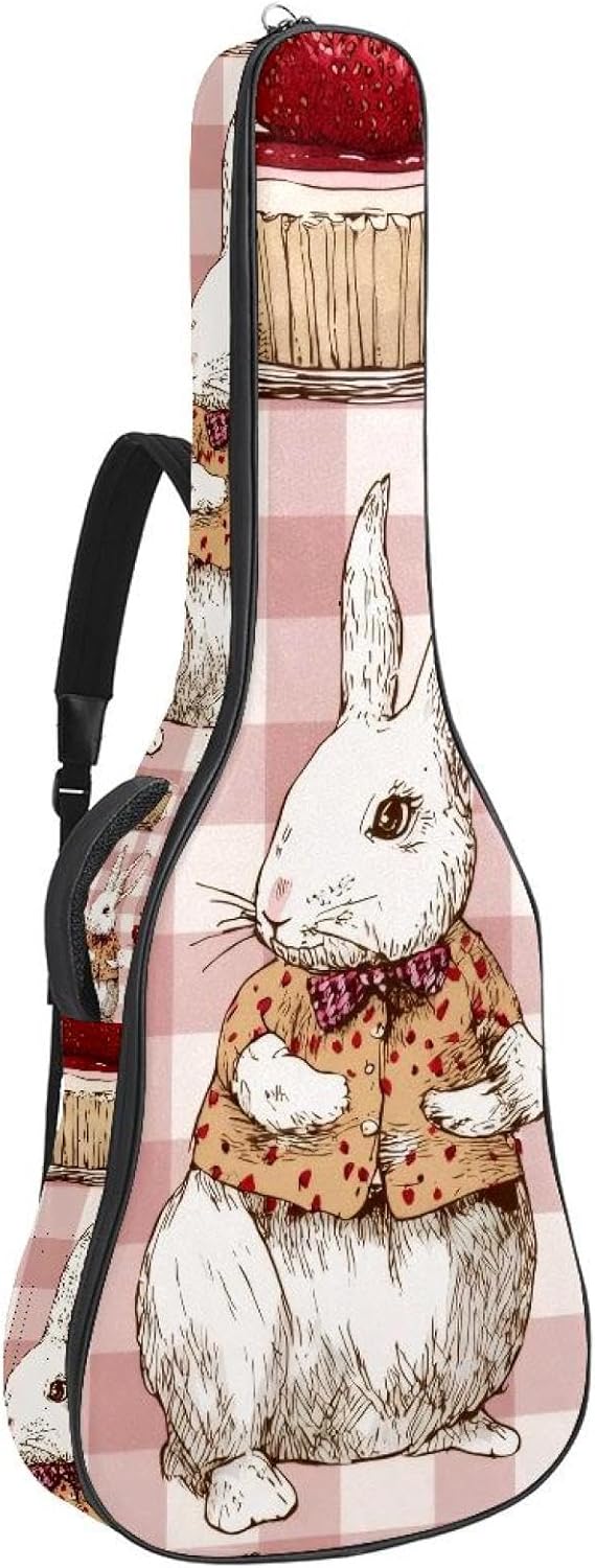 Give your valuable guitar the premium protection it deserves. Our Cute Printed Guitar Gig Bag is engineered for the modern musician who demands both security and convenience. Whether you're heading to a gig, a practice session, or on a short trip, this bag ensures your instrument arrives in perfect condition, ready to play.Constructed from durable, waterproof Oxford cloth, this bag stands up to the elements and the test of time. The interior is a sanctuary for your guitar, featuring ultra-thick padded sidewalls and a soft, anti-scratch lining that cradles your instrument, preventing scratches and damage. The heavy-duty rubber base acts as a shield against everyday bumps and allows for stable placement on any surface.Organization is effortless with multiple dedicated compartments. Two main storage pockets keep all your essential accessories—like a foldable music stand, tuner, picks, cables, and extra strings—neatly sorted and easily accessible. Never fumble for your tablet or sheet music again; the specially designed back pocket keeps them safe and separate.For a perfect, secure fit, the adjustable neck support and internal Velcro strap ensure your guitar does not shift around inside the bag, providing peace of mind with every carry.Care Instructions: To preserve the quality and appearance of your gig bag, please do not machine wash. Simply wipe clean with a damp cloth to remove any dirt or stains.