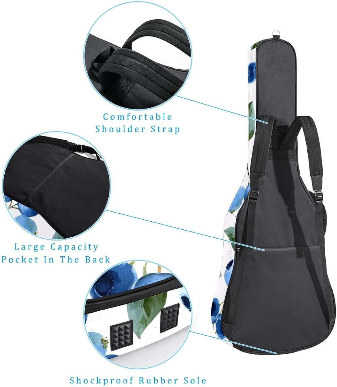 Give your valuable guitar the premium protection it deserves. Our Cute Printed Guitar Gig Bag is engineered for the modern musician who demands both security and convenience. Whether you're heading to a gig, a practice session, or on a short trip, this bag ensures your instrument arrives in perfect condition, ready to play.Constructed from durable, waterproof Oxford cloth, this bag stands up to the elements and the test of time. The interior is a sanctuary for your guitar, featuring ultra-thick padded sidewalls and a soft, anti-scratch lining that cradles your instrument, preventing scratches and damage. The heavy-duty rubber base acts as a shield against everyday bumps and allows for stable placement on any surface.Organization is effortless with multiple dedicated compartments. Two main storage pockets keep all your essential accessories—like a foldable music stand, tuner, picks, cables, and extra strings—neatly sorted and easily accessible. Never fumble for your tablet or sheet music again; the specially designed back pocket keeps them safe and separate.For a perfect, secure fit, the adjustable neck support and internal Velcro strap ensure your guitar does not shift around inside the bag, providing peace of mind with every carry.Care Instructions: To preserve the quality and appearance of your gig bag, please do not machine wash. Simply wipe clean with a damp cloth to remove any dirt or stains.