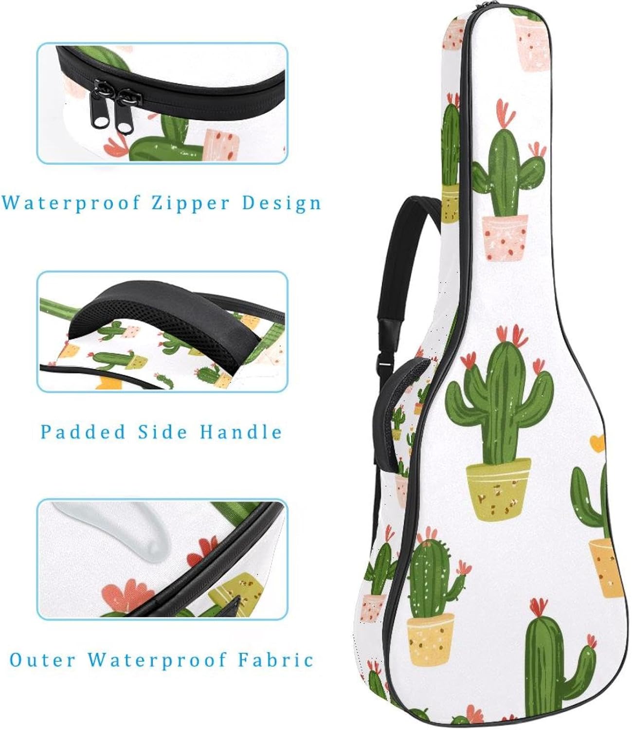 Give your valuable guitar the premium protection it deserves. Our Cute Printed Guitar Gig Bag is engineered for the modern musician who demands both security and convenience. Whether you're heading to a gig, a practice session, or on a short trip, this bag ensures your instrument arrives in perfect condition, ready to play.Constructed from durable, waterproof Oxford cloth, this bag stands up to the elements and the test of time. The interior is a sanctuary for your guitar, featuring ultra-thick padded sidewalls and a soft, anti-scratch lining that cradles your instrument, preventing scratches and damage. The heavy-duty rubber base acts as a shield against everyday bumps and allows for stable placement on any surface.Organization is effortless with multiple dedicated compartments. Two main storage pockets keep all your essential accessories—like a foldable music stand, tuner, picks, cables, and extra strings—neatly sorted and easily accessible. Never fumble for your tablet or sheet music again; the specially designed back pocket keeps them safe and separate.For a perfect, secure fit, the adjustable neck support and internal Velcro strap ensure your guitar does not shift around inside the bag, providing peace of mind with every carry.Care Instructions: To preserve the quality and appearance of your gig bag, please do not machine wash. Simply wipe clean with a damp cloth to remove any dirt or stains.