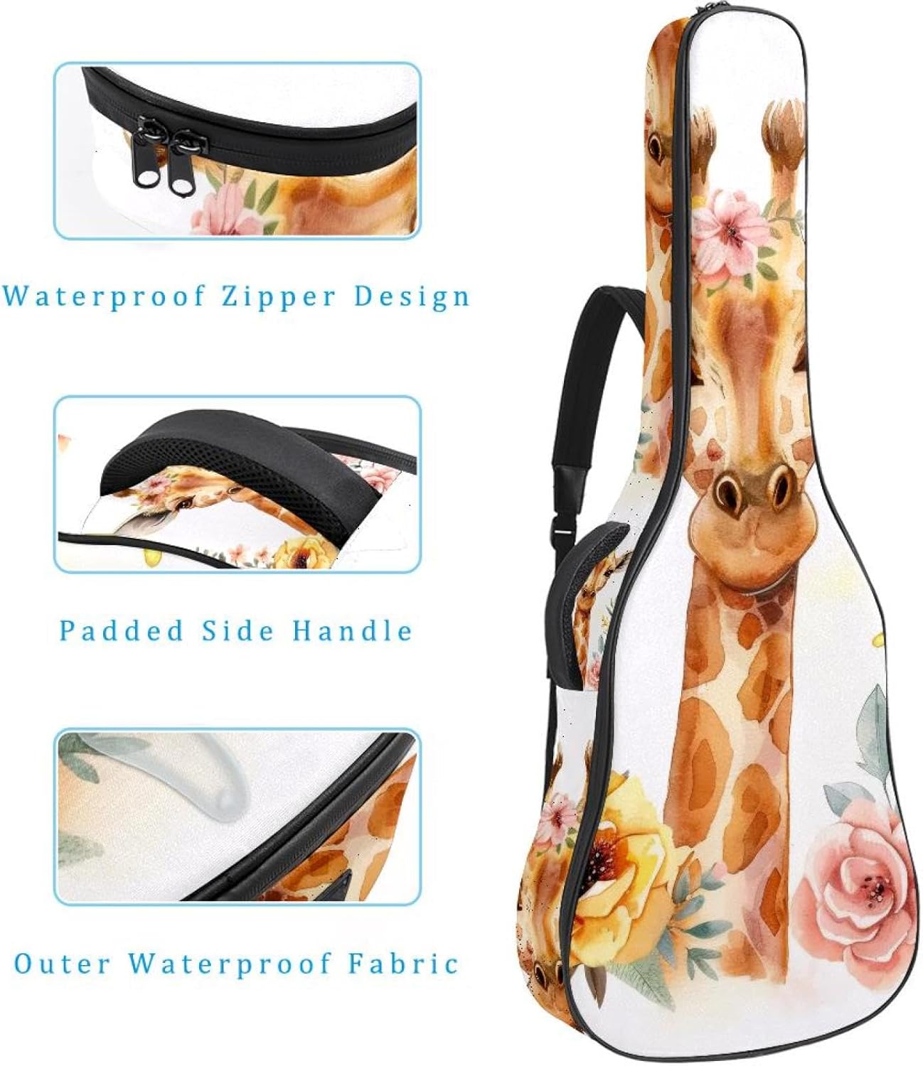 Give your valuable guitar the premium protection it deserves. Our Cute Printed Guitar Gig Bag is engineered for the modern musician who demands both security and convenience. Whether you're heading to a gig, a practice session, or on a short trip, this bag ensures your instrument arrives in perfect condition, ready to play.Constructed from durable, waterproof Oxford cloth, this bag stands up to the elements and the test of time. The interior is a sanctuary for your guitar, featuring ultra-thick padded sidewalls and a soft, anti-scratch lining that cradles your instrument, preventing scratches and damage. The heavy-duty rubber base acts as a shield against everyday bumps and allows for stable placement on any surface.Organization is effortless with multiple dedicated compartments. Two main storage pockets keep all your essential accessories—like a foldable music stand, tuner, picks, cables, and extra strings—neatly sorted and easily accessible. Never fumble for your tablet or sheet music again; the specially designed back pocket keeps them safe and separate.For a perfect, secure fit, the adjustable neck support and internal Velcro strap ensure your guitar does not shift around inside the bag, providing peace of mind with every carry.Care Instructions: To preserve the quality and appearance of your gig bag, please do not machine wash. Simply wipe clean with a damp cloth to remove any dirt or stains.