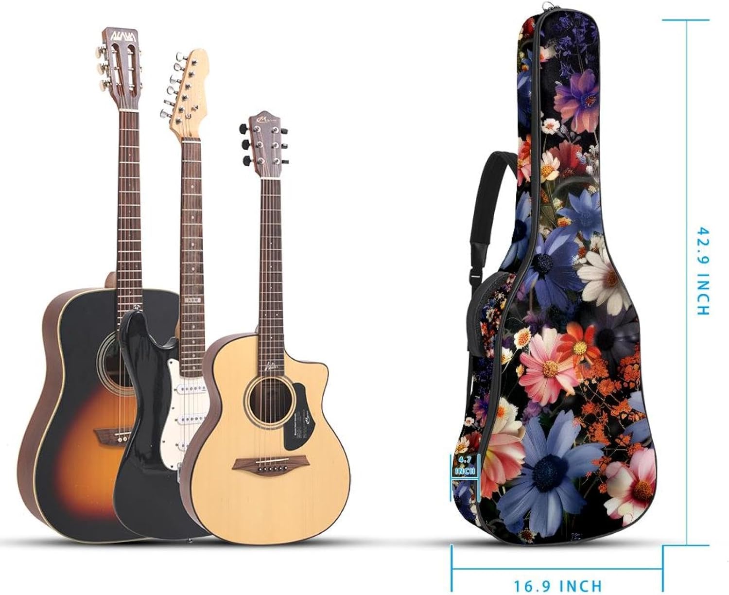 Give your valuable guitar the premium protection it deserves. Our Cute Printed Guitar Gig Bag is engineered for the modern musician who demands both security and convenience. Whether you're heading to a gig, a practice session, or on a short trip, this bag ensures your instrument arrives in perfect condition, ready to play.Constructed from durable, waterproof Oxford cloth, this bag stands up to the elements and the test of time. The interior is a sanctuary for your guitar, featuring ultra-thick padded sidewalls and a soft, anti-scratch lining that cradles your instrument, preventing scratches and damage. The heavy-duty rubber base acts as a shield against everyday bumps and allows for stable placement on any surface.Organization is effortless with multiple dedicated compartments. Two main storage pockets keep all your essential accessories—like a foldable music stand, tuner, picks, cables, and extra strings—neatly sorted and easily accessible. Never fumble for your tablet or sheet music again; the specially designed back pocket keeps them safe and separate.For a perfect, secure fit, the adjustable neck support and internal Velcro strap ensure your guitar does not shift around inside the bag, providing peace of mind with every carry.Care Instructions: To preserve the quality and appearance of your gig bag, please do not machine wash. Simply wipe clean with a damp cloth to remove any dirt or stains.