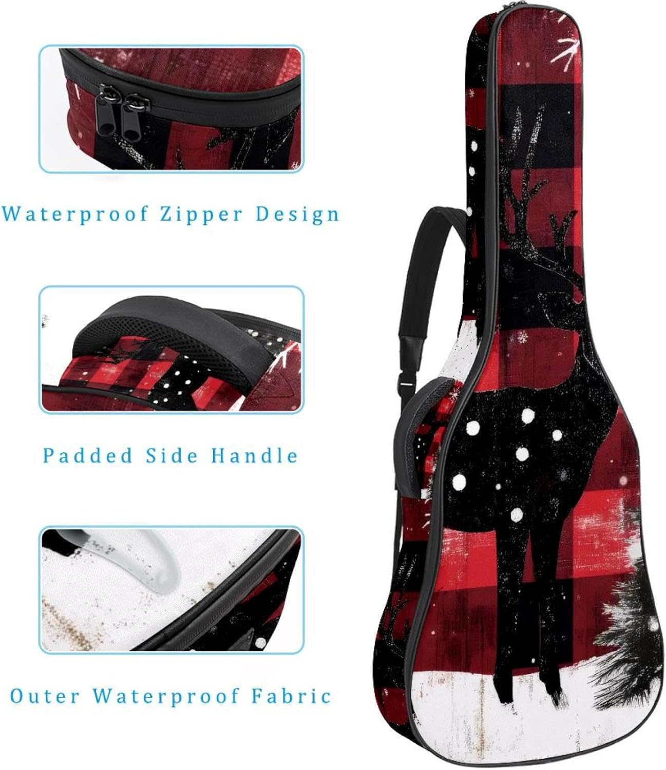 Give your valuable guitar the premium protection it deserves. Our Cute Printed Guitar Gig Bag is engineered for the modern musician who demands both security and convenience. Whether you're heading to a gig, a practice session, or on a short trip, this bag ensures your instrument arrives in perfect condition, ready to play.Constructed from durable, waterproof Oxford cloth, this bag stands up to the elements and the test of time. The interior is a sanctuary for your guitar, featuring ultra-thick padded sidewalls and a soft, anti-scratch lining that cradles your instrument, preventing scratches and damage. The heavy-duty rubber base acts as a shield against everyday bumps and allows for stable placement on any surface.Organization is effortless with multiple dedicated compartments. Two main storage pockets keep all your essential accessories—like a foldable music stand, tuner, picks, cables, and extra strings—neatly sorted and easily accessible. Never fumble for your tablet or sheet music again; the specially designed back pocket keeps them safe and separate.For a perfect, secure fit, the adjustable neck support and internal Velcro strap ensure your guitar does not shift around inside the bag, providing peace of mind with every carry.Care Instructions: To preserve the quality and appearance of your gig bag, please do not machine wash. Simply wipe clean with a damp cloth to remove any dirt or stains.