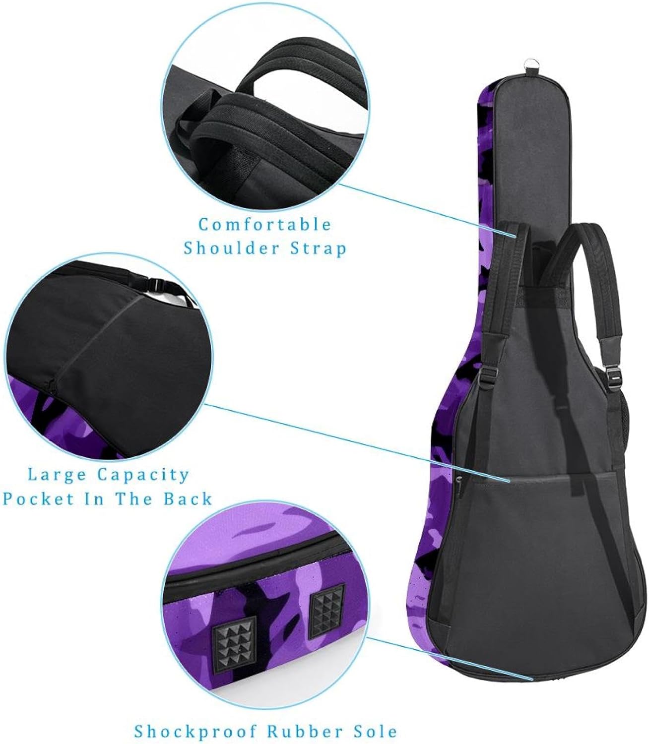 Give your valuable guitar the premium protection it deserves. Our Cute Printed Guitar Gig Bag is engineered for the modern musician who demands both security and convenience. Whether you're heading to a gig, a practice session, or on a short trip, this bag ensures your instrument arrives in perfect condition, ready to play.Constructed from durable, waterproof Oxford cloth, this bag stands up to the elements and the test of time. The interior is a sanctuary for your guitar, featuring ultra-thick padded sidewalls and a soft, anti-scratch lining that cradles your instrument, preventing scratches and damage. The heavy-duty rubber base acts as a shield against everyday bumps and allows for stable placement on any surface.Organization is effortless with multiple dedicated compartments. Two main storage pockets keep all your essential accessories—like a foldable music stand, tuner, picks, cables, and extra strings—neatly sorted and easily accessible. Never fumble for your tablet or sheet music again; the specially designed back pocket keeps them safe and separate.For a perfect, secure fit, the adjustable neck support and internal Velcro strap ensure your guitar does not shift around inside the bag, providing peace of mind with every carry.Care Instructions: To preserve the quality and appearance of your gig bag, please do not machine wash. Simply wipe clean with a damp cloth to remove any dirt or stains.