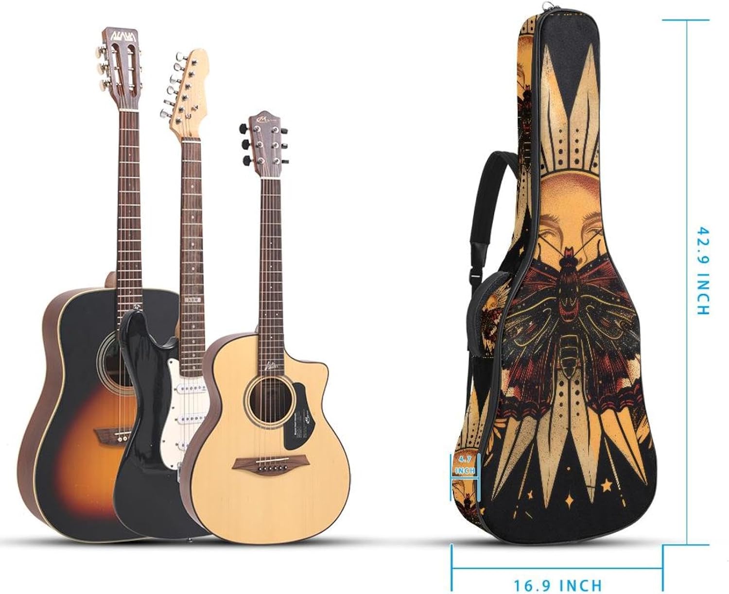 Give your valuable guitar the premium protection it deserves. Our Cute Printed Guitar Gig Bag is engineered for the modern musician who demands both security and convenience. Whether you're heading to a gig, a practice session, or on a short trip, this bag ensures your instrument arrives in perfect condition, ready to play.Constructed from durable, waterproof Oxford cloth, this bag stands up to the elements and the test of time. The interior is a sanctuary for your guitar, featuring ultra-thick padded sidewalls and a soft, anti-scratch lining that cradles your instrument, preventing scratches and damage. The heavy-duty rubber base acts as a shield against everyday bumps and allows for stable placement on any surface.Organization is effortless with multiple dedicated compartments. Two main storage pockets keep all your essential accessories—like a foldable music stand, tuner, picks, cables, and extra strings—neatly sorted and easily accessible. Never fumble for your tablet or sheet music again; the specially designed back pocket keeps them safe and separate.For a perfect, secure fit, the adjustable neck support and internal Velcro strap ensure your guitar does not shift around inside the bag, providing peace of mind with every carry.Care Instructions: To preserve the quality and appearance of your gig bag, please do not machine wash. Simply wipe clean with a damp cloth to remove any dirt or stains.