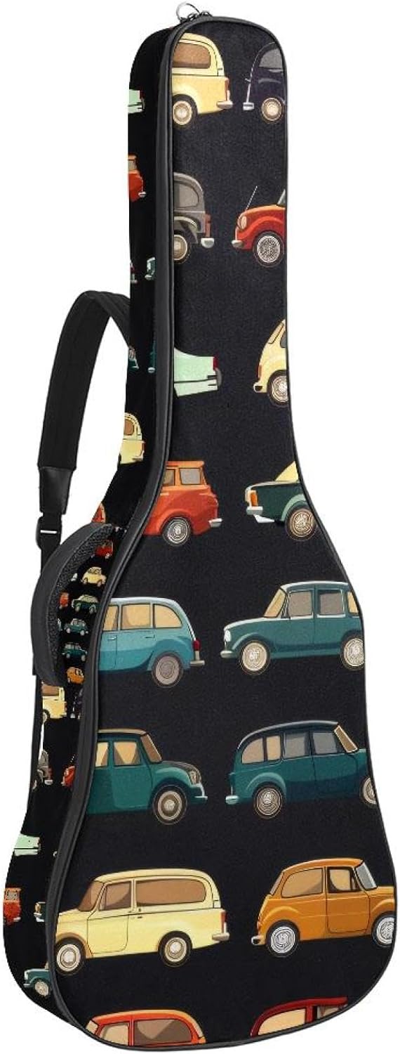 Give your valuable guitar the premium protection it deserves. Our Cute Printed Guitar Gig Bag is engineered for the modern musician who demands both security and convenience. Whether you're heading to a gig, a practice session, or on a short trip, this bag ensures your instrument arrives in perfect condition, ready to play.Constructed from durable, waterproof Oxford cloth, this bag stands up to the elements and the test of time. The interior is a sanctuary for your guitar, featuring ultra-thick padded sidewalls and a soft, anti-scratch lining that cradles your instrument, preventing scratches and damage. The heavy-duty rubber base acts as a shield against everyday bumps and allows for stable placement on any surface.Organization is effortless with multiple dedicated compartments. Two main storage pockets keep all your essential accessories—like a foldable music stand, tuner, picks, cables, and extra strings—neatly sorted and easily accessible. Never fumble for your tablet or sheet music again; the specially designed back pocket keeps them safe and separate.For a perfect, secure fit, the adjustable neck support and internal Velcro strap ensure your guitar does not shift around inside the bag, providing peace of mind with every carry.Care Instructions: To preserve the quality and appearance of your gig bag, please do not machine wash. Simply wipe clean with a damp cloth to remove any dirt or stains.