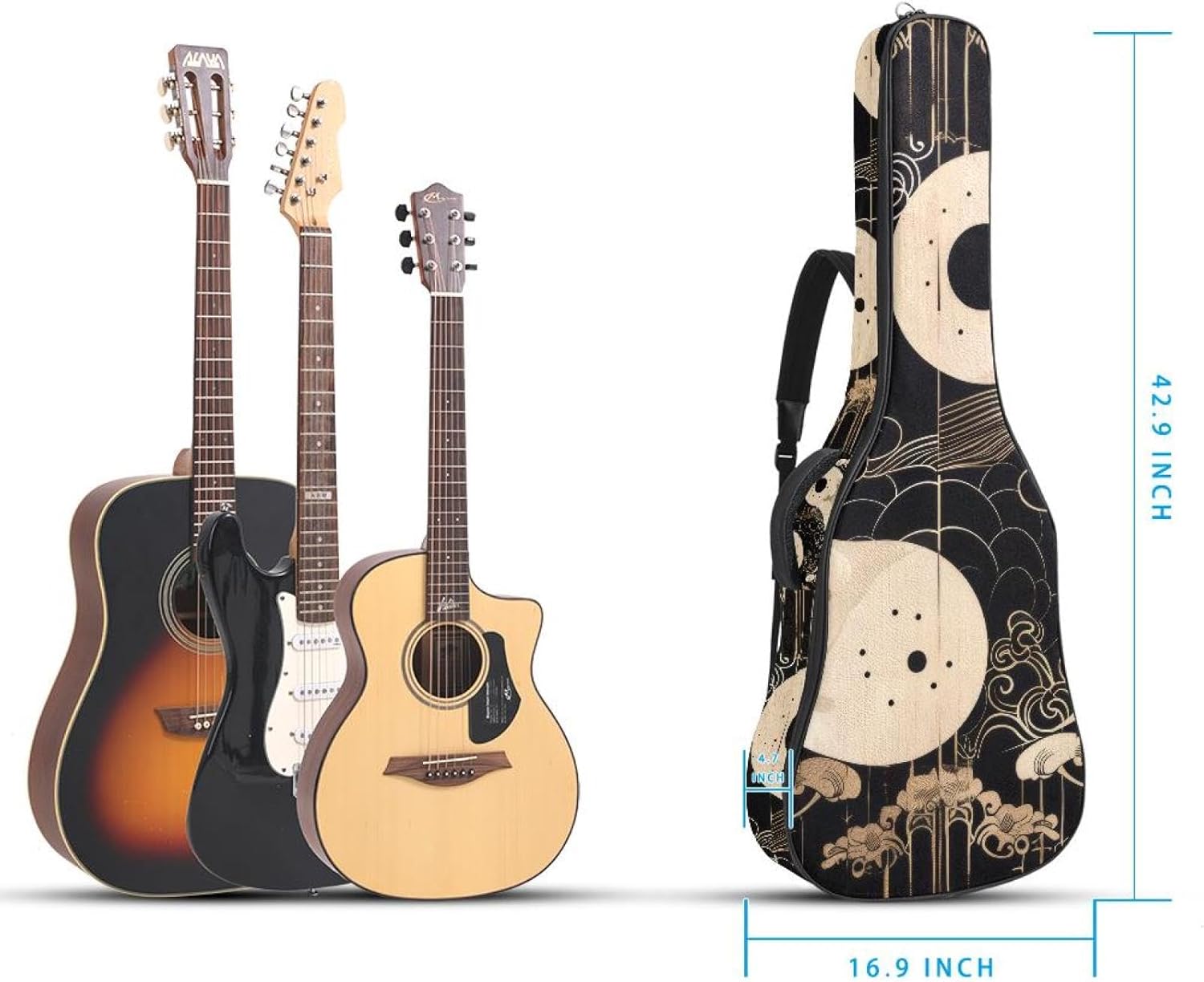 Give your valuable guitar the premium protection it deserves. Our Cute Printed Guitar Gig Bag is engineered for the modern musician who demands both security and convenience. Whether you're heading to a gig, a practice session, or on a short trip, this bag ensures your instrument arrives in perfect condition, ready to play.Constructed from durable, waterproof Oxford cloth, this bag stands up to the elements and the test of time. The interior is a sanctuary for your guitar, featuring ultra-thick padded sidewalls and a soft, anti-scratch lining that cradles your instrument, preventing scratches and damage. The heavy-duty rubber base acts as a shield against everyday bumps and allows for stable placement on any surface.Organization is effortless with multiple dedicated compartments. Two main storage pockets keep all your essential accessories—like a foldable music stand, tuner, picks, cables, and extra strings—neatly sorted and easily accessible. Never fumble for your tablet or sheet music again; the specially designed back pocket keeps them safe and separate.For a perfect, secure fit, the adjustable neck support and internal Velcro strap ensure your guitar does not shift around inside the bag, providing peace of mind with every carry.Care Instructions: To preserve the quality and appearance of your gig bag, please do not machine wash. Simply wipe clean with a damp cloth to remove any dirt or stains.