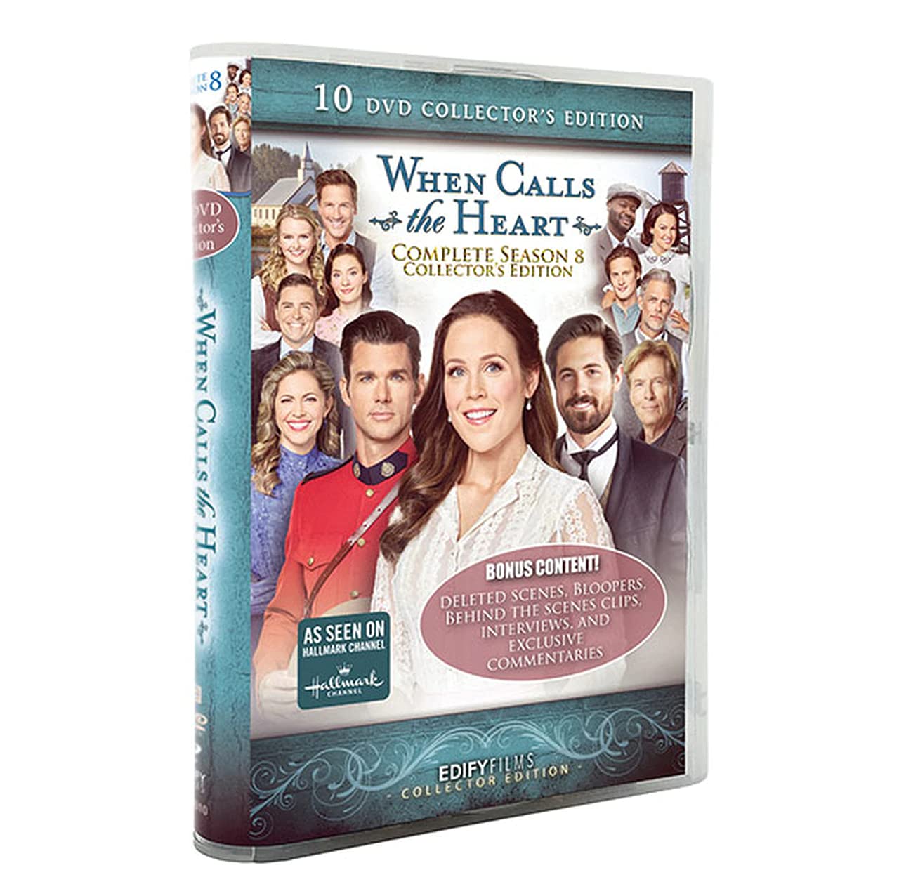 Here it is, the brand new COMPLETE Season 8 of When Calls the Heart! This includes the original 12 episodes plus the 6 movie versions. The DVD player Region Code is Region 0 (All) with an NR rating. Also includes English subtitles and English closed captions. From the Hallmark Channel and acclaimed Director, Michael Landon Jr. comes the continuation of When Calls the Heart in the When Calls the Heart Season 8 Collector’s Edition. Inspired by the beloved books by Janette Oke; Season Eight continues the story of love, hope, courage, and faith on the Canadian frontier. Follow the adventures of the young school teacher Elizabeth Thatcher as she faces new adventures and trials along with her infant son Jack and the many citizens of Hope Valley, a town that has become a symbol of the love and support the residents have for one another. Erin Krakow (Army Wives), Jack Wagner (Melrose Place), Pascale Hutton (Flashpoint), Kavan Smith (The 4400), and Martin Cummins (Riverdale) star in When Calls the Heart, a show that is a testament to human perseverance and faith (Common Sense Media). The Season 8 Collector's Edition is the must have for When Calls the Heart fans everywhere. The set includes 10 DVD's, the original 12 episode TV shows, as well as 6 movie versions. There are also DVD's of deleted scenes, Bloopers, behind the scenes clips, interviews, and exclusive commentaries. Includes these DVDs: Season 7 Movie Releases (discs 1-6): Open Season, From the Ashes, What the Heart Wants, Before My Very Eyes, Pre-Wedding Jitters, and Changing Times. TV Episodes and Bonus Discs (discs 7-10): Episodes 1-6, Episodes 7-12, and two discs of Bonus features!