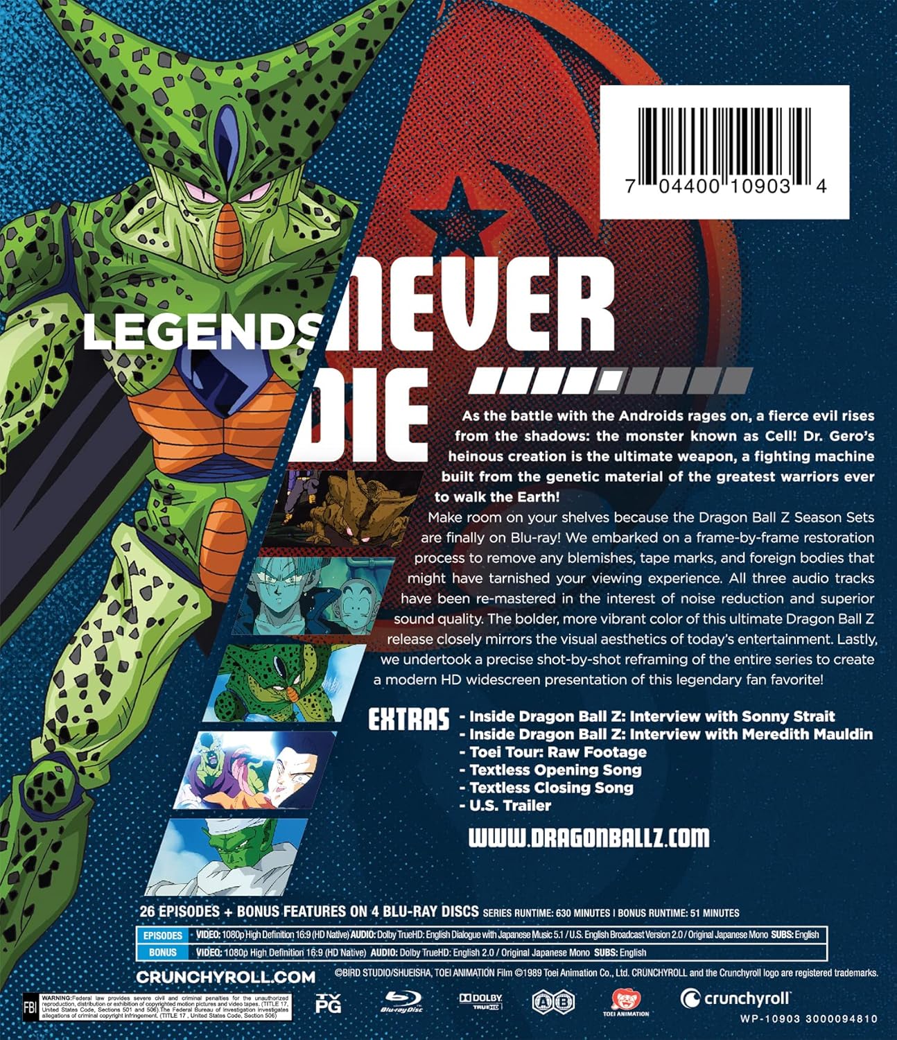 As the battle with the Androids rages on, a fierce evil rises from the shadows: the monster known as Cell! Dr. Gero's heinous creation is the ultimate weapon, a fighting machine built from the genetic material of the greatest warriors ever to walk the Earth!Bonus Content:b>Disc 1 - Dragon Ball Z Season 5: Includes multiple audio tracks: Dolby TrueHD 5.1 (English dialogue with Japanese music); Dolby TrueHD 2.0 (U.S. English broadcast version); and original Japanese Mono.Disc 4 - Dragon Ball Z Season 5: Inside Dragon Ball Z: Interview with Sonny StraitInside Dragon Ball Z: Interview with Meredith McCoyToei Tour: Raw FootageTextless Opening and Ending SongsU.S. Trailer]]>