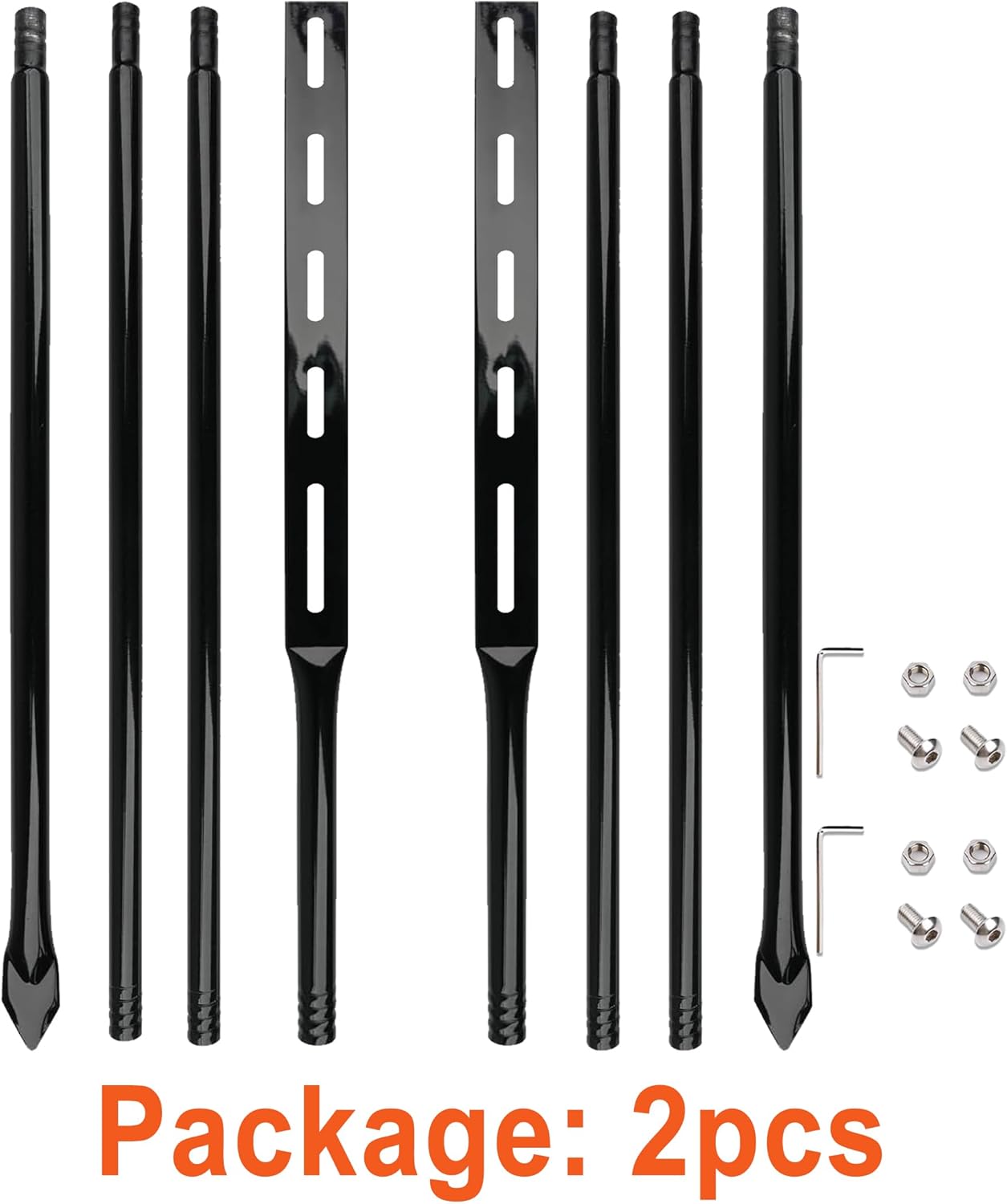 These robust 72-inch metal stakes are designed to securely hold yard signs in place, offering exceptional stability and durability for outdoor display needs. The black-finished heavy-duty posts come in a convenient 2-pack and include all necessary hardware for immediate installation. Each stake features multiple pre-drilled holes for versatile mounting options, allowing you to adjust the height of your signs as needed. The pointed tip design enables easy ground penetration, while the sturdy metal construction ensures these posts stand strong against wind and weather. Perfect for real estate signs, yard advertisements, event directions, or seasonal displays, these professional-grade sign posts provide reliable support for your outdoor signage needs. The substantial length offers deep ground anchoring for enhanced stability, making them ideal for both temporary and long-term sign installations.