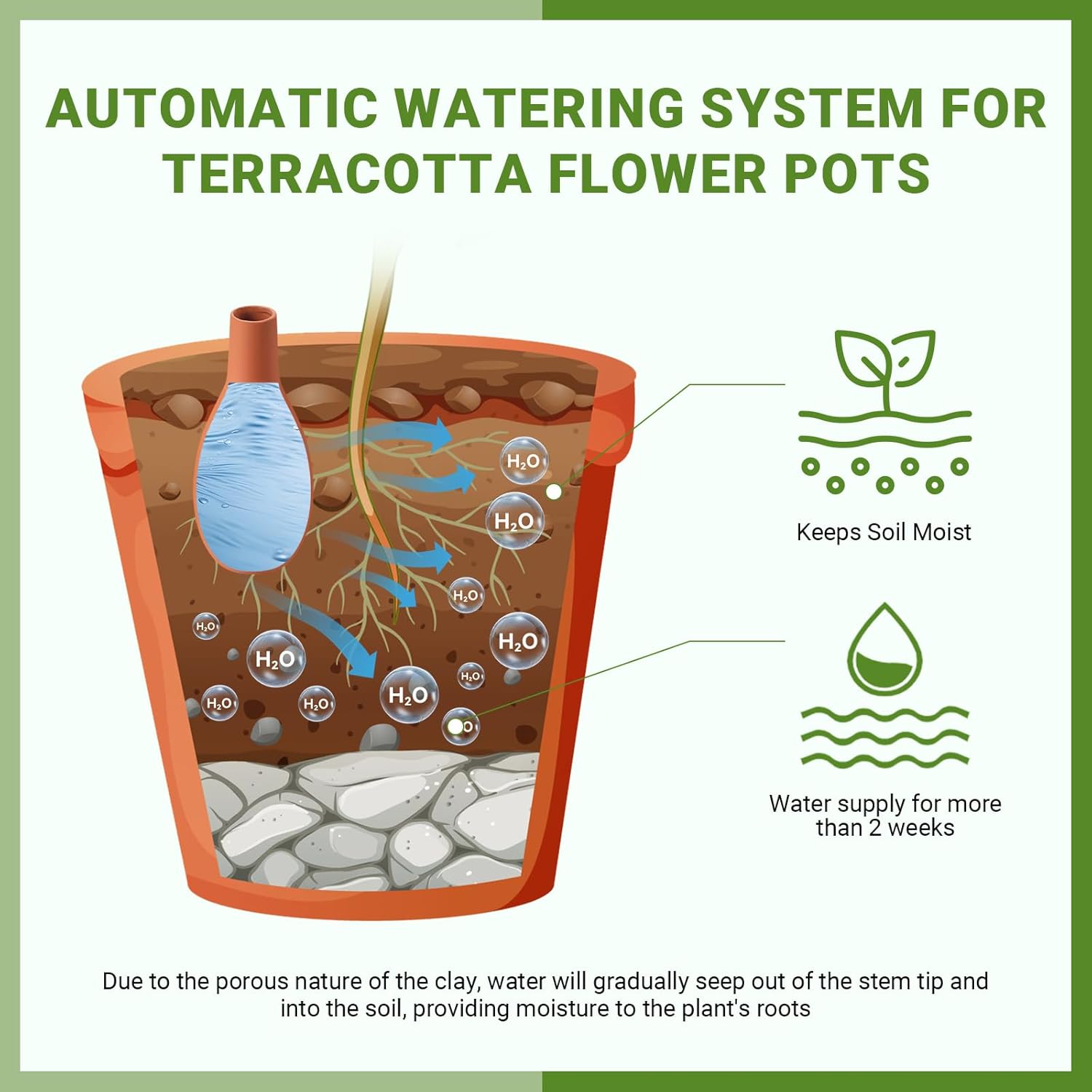 Features: This terracotta watering bowl set contains 3 self-watering bowls This terracotta automatic watering planter is suitable for both indoor and outdoor plants and can be widely applied in homes, offices, gardens, terraces, and other locations. Specifications: Material: Terracotta Color: brown Size: 12oz, 20oz, 33oz Package includes: 3 X Self-Watering Ollas Terracotta Pots Notes: Manual measurement, please allow slight errors on size. The color may exist a slight difference due to different screen displays