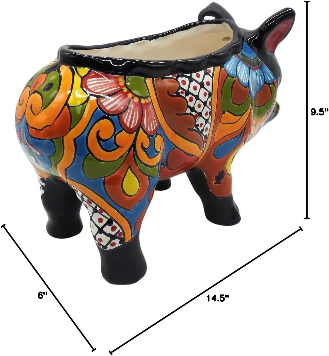All of our Talavera pottery is handmade and individually painted using lead-free pigments and glazes. The process is extremely precise and involved taking 4-8 weeks to create each piece. As a result, each piece varies slightly in color, shape and design. Occasionally, you will notice a small paint smudge, fingerprint or other "imperfection". These are all signs of authenticity and character reminding us of the human hands that formed it. Talavera pottery is not frost or freeze proof and must be taken indoors before the first frost. Talavera pottery does not like to sit in water, get hit by your sprinklers or be in a greenhouse. Over time, small lines may appear on the blue portion of your Talavera pottery. This aging process is called crazing and does not affect a piece's durability. You can minimize crazing by avoiding drastic temperature changes, saltwater and well water.