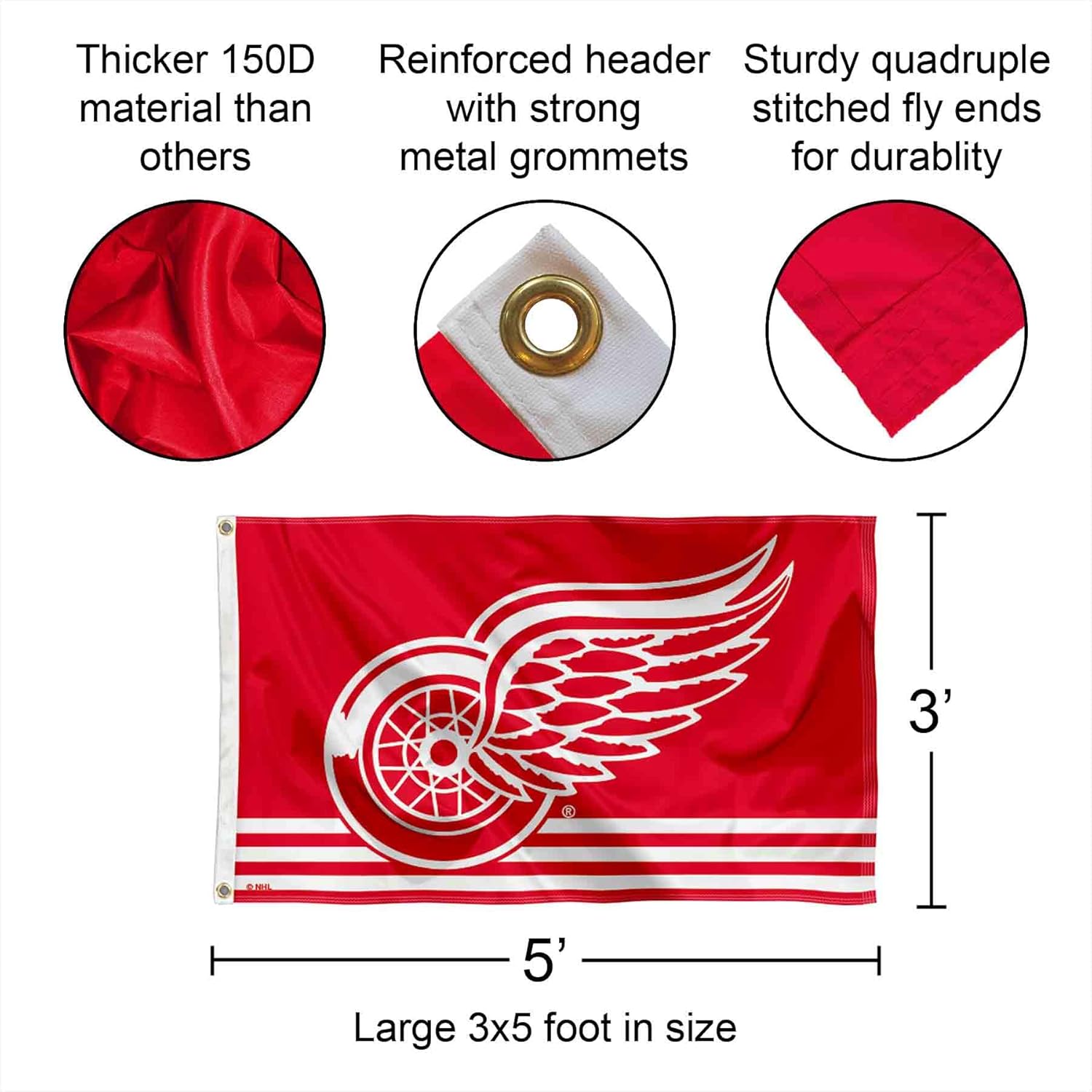 This Flag, Banner or Pennant includes the 3x5 foot flag as shown along with our recommended accessories including a 6' spinning flagpole and adjustable aluminum flag bracket. The flag is 3x5 feet in size, made of single-ply polyester, has screen printed logos (opposite side is reverse image), includes quadruple stitched flyends for extra durability, and two metal grommets for attaching to the included flagpole or any of your flagpole systems. The included 6' pole is our spinning aluminum flagpole so the flag will fly tangle free. Also included is our adjustable aluminum flag bracket which adjusts every 15 degrees from 0-180 degrees so you can fly this flag at any angle. This is a great gift item and includes all hardware so it's easy for you to install and proudly fly your team allegiance. This flag is League Officially Licensed by Team