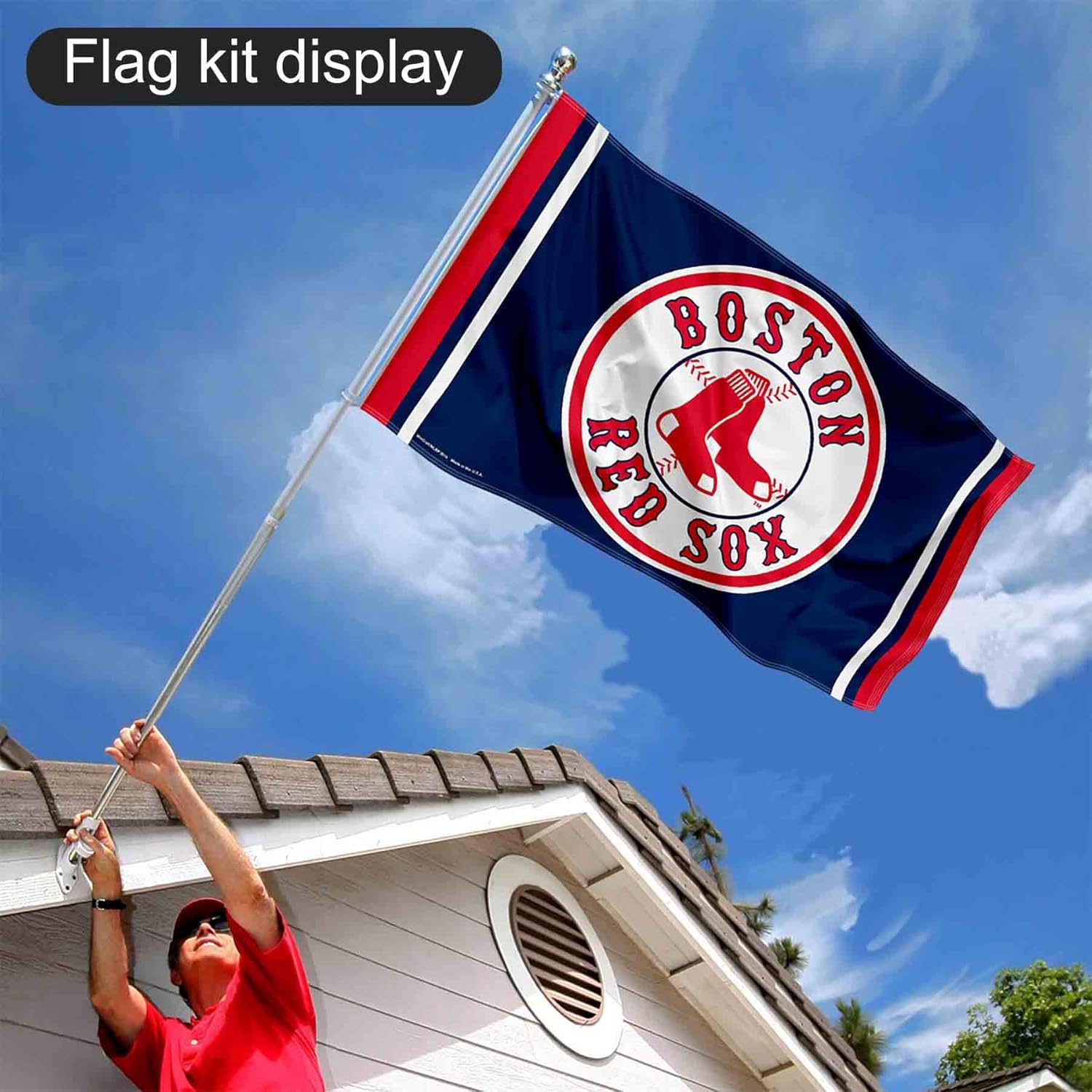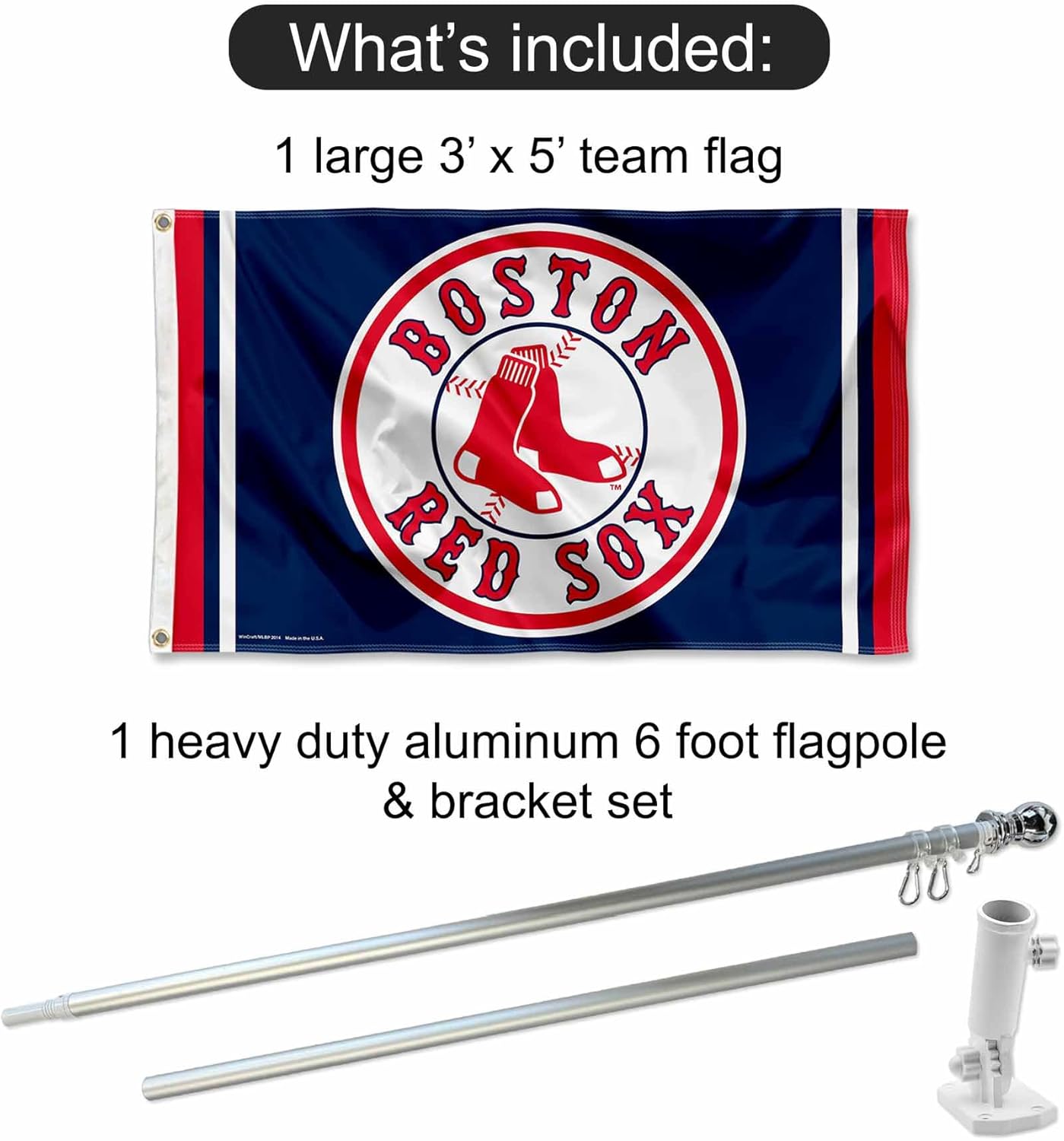 This flag, bracket, and pole kit includes the 3x5 foot flag as shown along with our recommended accessories including a 6' spinning flagpole and adjustable aluminum flag bracket. The flag is 3x5 feet in size, made of single-ply polyester, has screen printed logos (opposite side is reverse image), includes quadruple stitched flyends for extra durability, and two metal grommets for attaching to the included flagpole or any of your flagpole systems. The included 6' pole is our spinning aluminum flagpole so the flag will fly tangle free. Also included is our adjustable aluminum flag bracket which adjusts every 15 degrees from 0-180 degrees so you can fly this flag at any angle. This is a great gift item and includes all hardware so it's easy for you to install and proudly fly your team allegiance. This flag is team approved.
