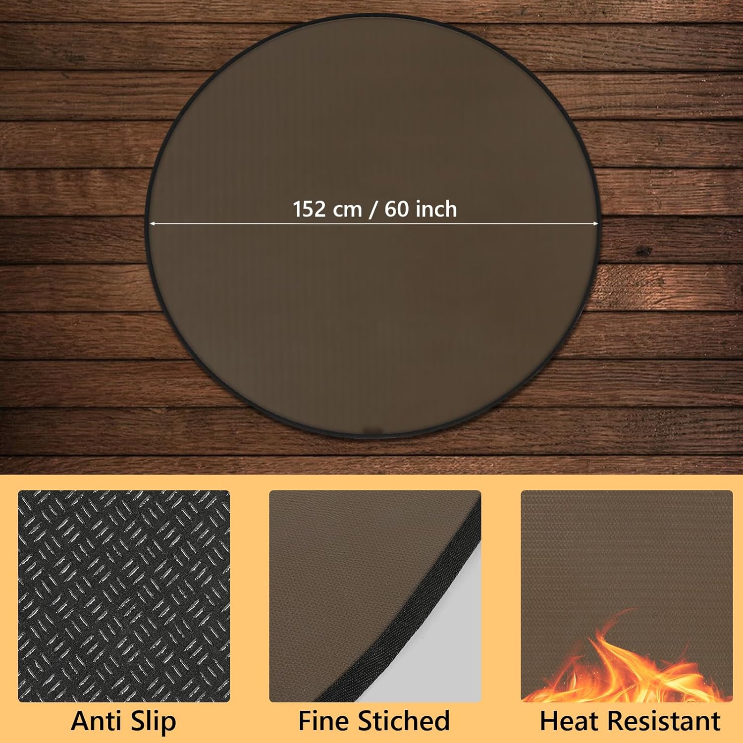 Round Under Grill Mat for Outdoor Grill, 60 Inch Anti-Slip BBQ Floor Mats, Easy to Clean Reusable Fireproof Grill Pad, Oil-Proof Waterproof Protector for Deck Fireplace Pit Mat Brown