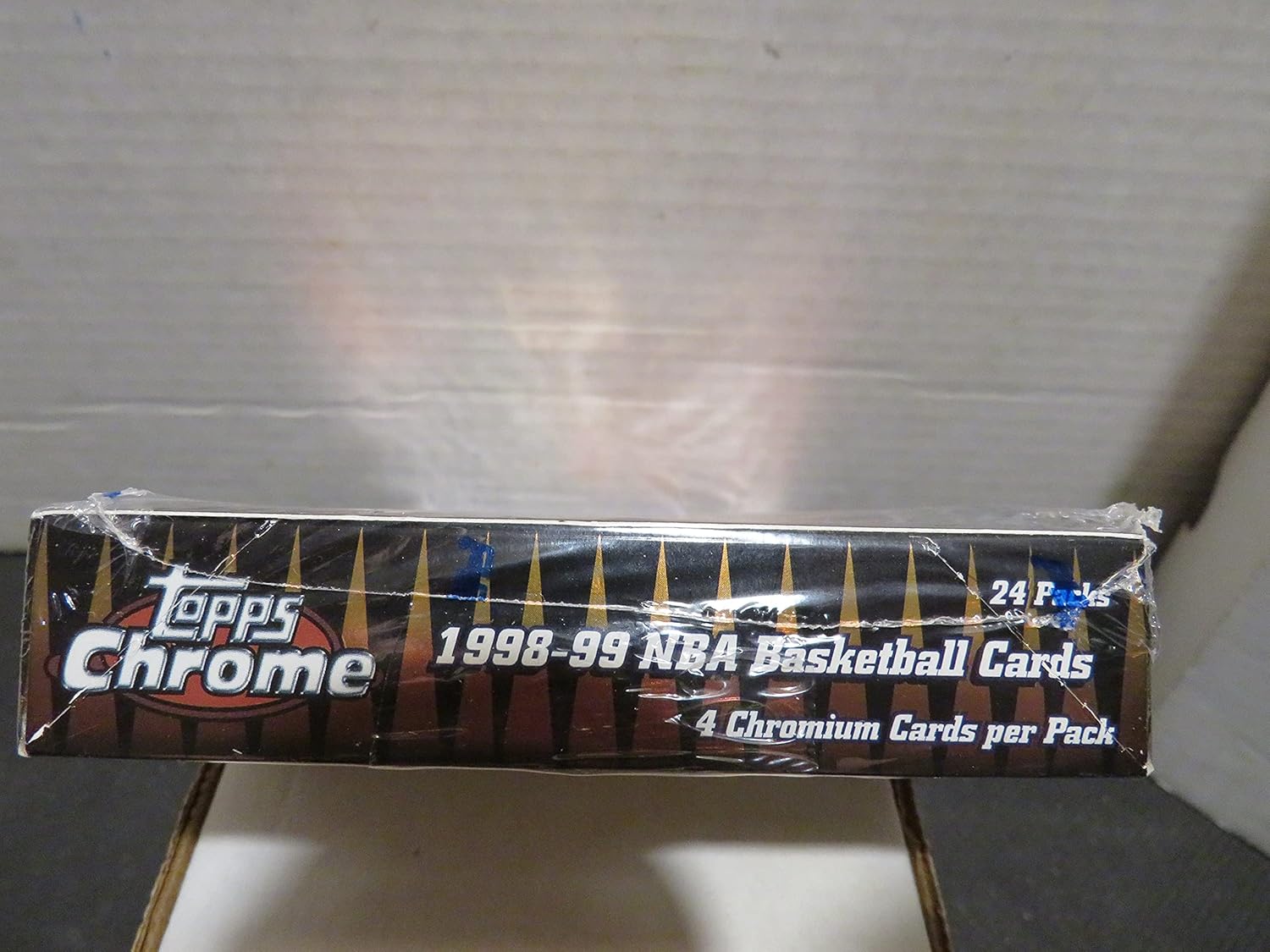 SALE IS FOR ONE 1998-99 TOPPS CHROME BASKETBALL FACTORY SEALED BOX 30 HALL OF FAMERS AND 28 ROOKIES ARE PICTURED IN BASE SET OF 220 CARDS. PAULPIERCE, VINCE CARTER AND DIRK NOWITZKI ARE AT THE TOPP OF THE ROOKIE CLASS IN THIS SET. THERE ARE 24 PACKS PER BOX AND 4 CHROMIUM CARDS PER PACK . CONDITION: BOX LOOKS TO BE IN MINT CONDTION WITH 8 SHARP CORNERS. We are All American Sportscards of West Chester, Pa. in business buying and selling collections, sportscards, records, supplies and memorabilia since 1980.