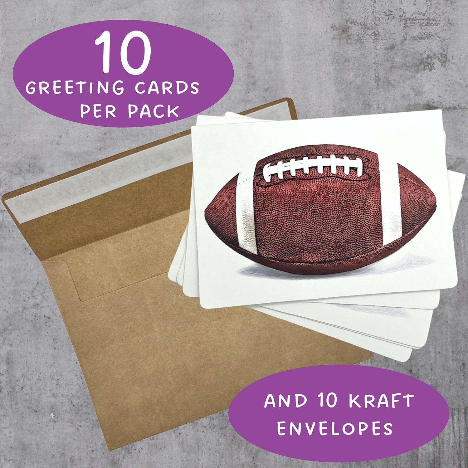 Introducing the Whitman and Daughter Football Theme Greeting Cards, a perfect blend of style and sentimentality for all football enthusiasts. This exquisite set includes ten premium quality cards, each crafted on luxurious cardstock, ensuring durability and a touch of elegance. Designed with a football theme, these cards are versatile, catering to a wide range of occasions and recipients. Whether you are looking to express gratitude or celebrate a birthday, our cards are a perfect choice. Each card is thoughtfully designed, blank inside to provide ample space for your personalized message, allowing you to convey your sentiments in your own words. Accompanying these beautifully crafted football greeting cards are Kraft envelopes, enhancing the overall presentation with a rustic charm. The set is perfect for those seeking football coach thank you cards, ideal for expressing appreciation to the mentors who inspire and guide. Celebrate birthdays with our collection of football birthday cards for boys and girls, designed to bring a smile to young sports enthusiasts. These cards are also suitable as football birthday cards for women, offering a unique way to honor the special women in your life who share a love for the game. For him, our football birthday cards are a perfect choice, ensuring that every football-loving gentleman feels celebrated on his special day. The versatility of these cards extends to their use as girls flag football greeting cards, offering a gender-inclusive option for those who participate in or support this exciting sport. The bulk 10-pack is perfect for sports party invitations or thank you notes, providing a cohesive theme for your football-themed events.