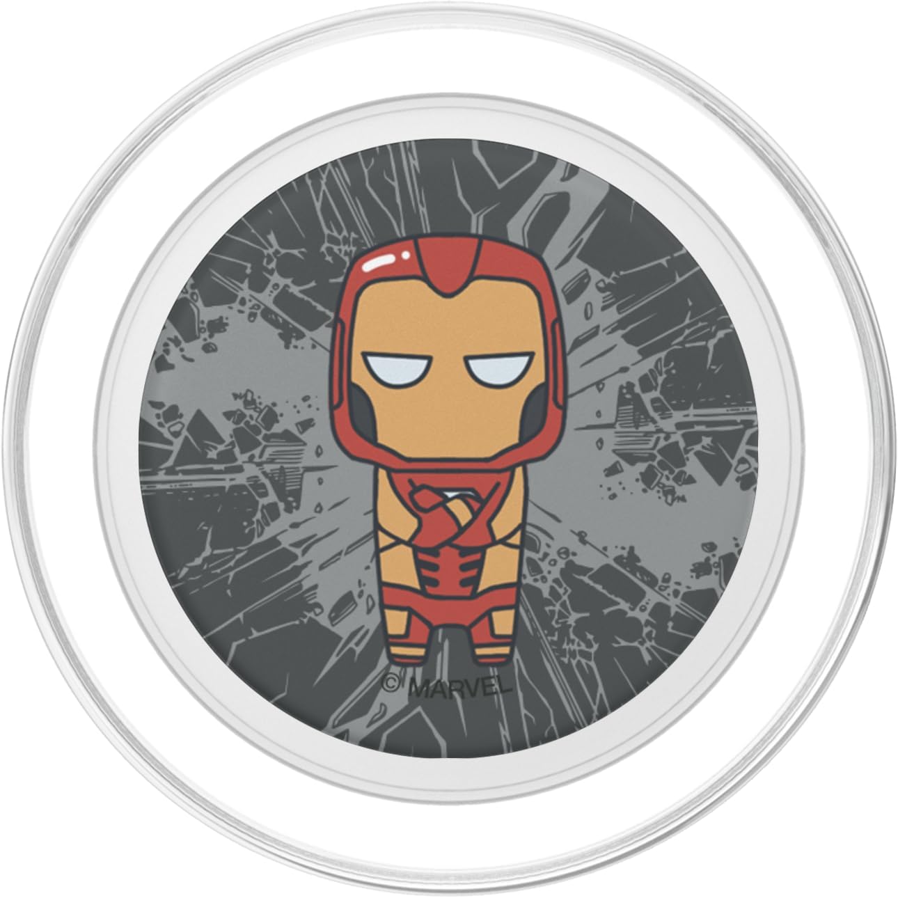 This cute cartoon Avengers phone stand features Tony Stark, aka Iron Man, sporting a no-nonsense stance, the way only a Super Hero can. Marvel's Avengers are Earth's Mightiest Heroes, and on this cartoon phone grip, Iron Man is earth's cutest hero. Stick this pop up grip to the back of your phone or tablet and use it as a handle for taking selfies or as a stand for watching videos.