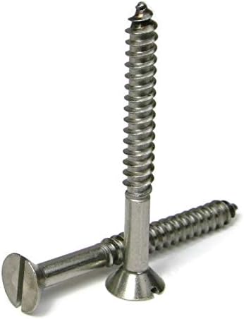 #18-9 Stainless Steel Slotted Flat Head Wood Screws are used to hold wood pieces together tightly and efficiently. These screws have a flat head for a flush and clean finish when installed properly. The shoulder on a wood screw slides through the top board of wood and tightly pulls it against the lower piece of wood.