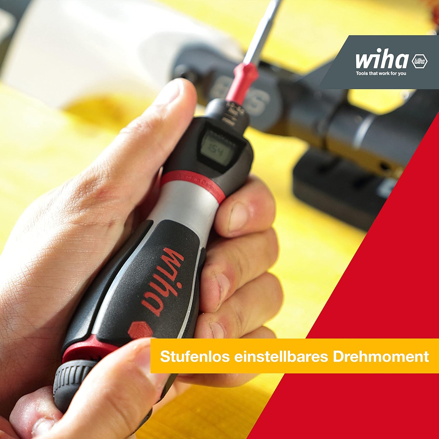 For applications where recommended torque settings are important. Use in combination with a Wiha torque interchangeable blade. Torque can be conveniently set directly via push button integrated in handle. Ergonomic plastic/metal compound handle of quality, robust materials. Handle sizes proportioned to optimise torque setting. Distinctly audible and perceptible click signal when set toque is reached.