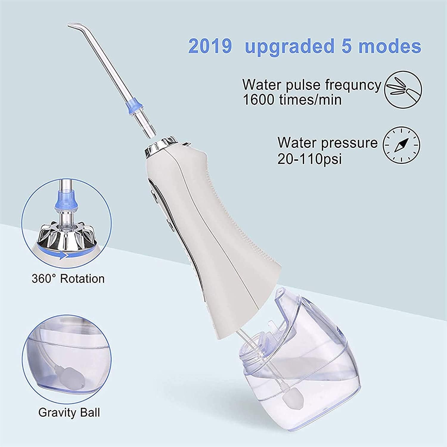 Powerful pulse water:Water flosser supports 3 operation modes (Normal, Gentle, Pulse), delivering a water pressure of 30 to 100 psi, and you can choose your best pressure setting.Water frequency up to 1800 times/minute, quickly clean up food debris and bacteria hiding in your teeth, gum and fissure.Detachable 360°Rotating Nozzle:360° rotating nozzle provides deep cleaning, and can be used for cavity prevention, plaque control, tartar control, whitening, gum care, and sensitivity relief. Function better when using it for braces, dental implants and Tooth-Sensitive and good for gum Healthy.IPX7 Waterproof Technology?Featuring waterproof technology. Ideal to use in bathroom. Enhanced safety is ensured through electric leakage proof design.Fully enclosed waterproof body is easy to clean, without being afraid of leakage.Large Capacity Water Tank:Avoid the hassle of having to frequently refill the water while flossing.Convenient and Portable:Fill water into the tank, install the jet tip, select the flush mode, turn on ,then you can have a good cleaning experience anywhere like at home, when traveling, on business, at school...