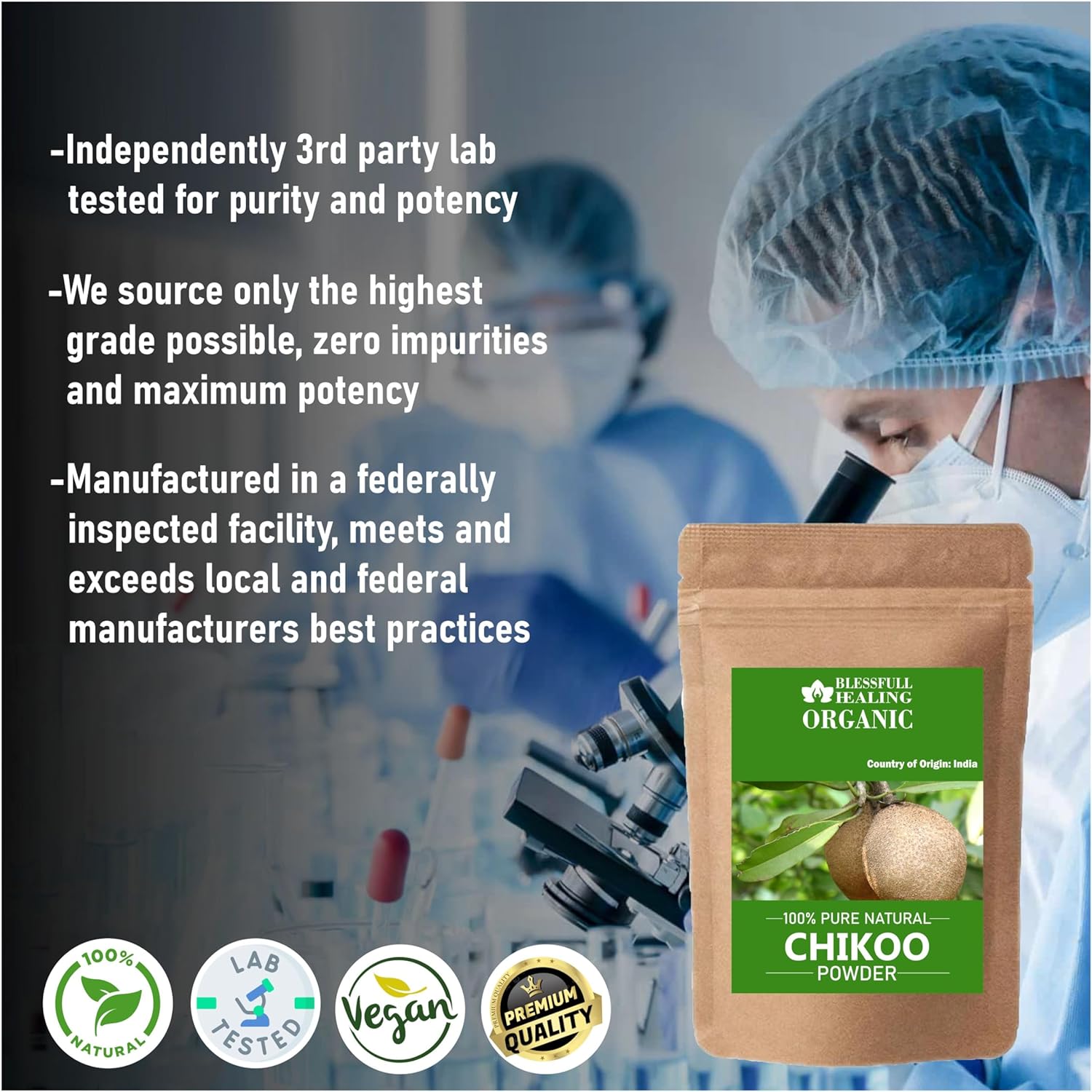 * Brand :- Blessfull Healing * Beautiful Chikoo Powder 100% Pure Natural 200 Gram / 7.05 oz* Powder :- Chikoo * Size:- 200 Gram / 7.05 oz* Sale For :- 1 Piece