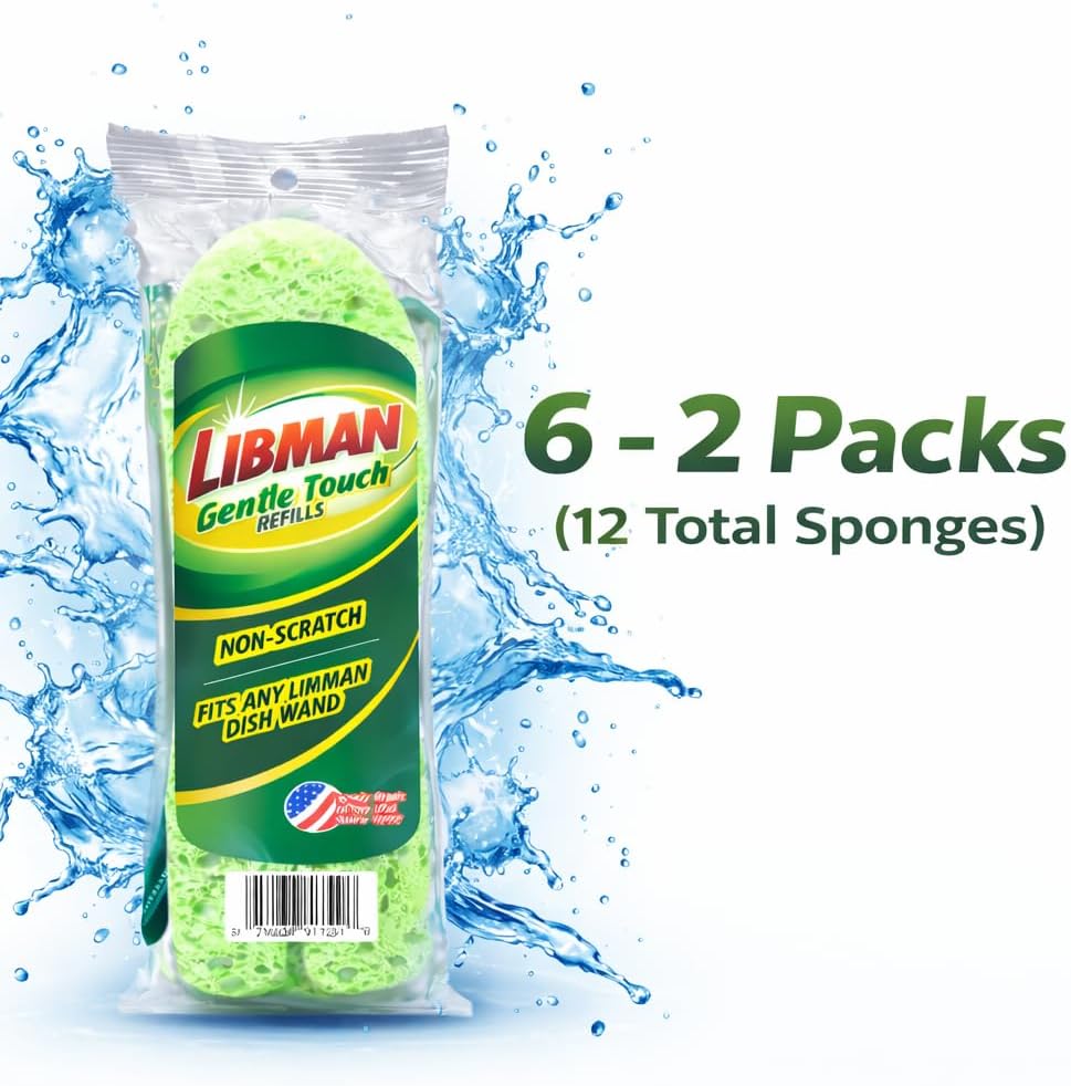 The Libman 1131 Dish Wand Refills are designed for everyday dishwashing with a focus on surface safety and cleaning control. Each refill features a non-scratch cellulose sponge that effectively cleans while remaining safe for delicate items such as glassware, ceramic dishes, and nonstick cookware. An integrated scraper edge helps loosen baked-on or dried food residue, allowing you to tackle tougher spots without switching tools or using abrasive scrub pads. This makes the 1131 refill ideal for light-to-medium cleaning tasks where protecting surfaces is just as important as removing food messes. The cellulose sponge allows dish soap to flow smoothly from the dish wand handle, delivering consistent suds directly to the cleaning surface for efficient, mess-reducing washing. These genuine Libman refill heads are easy to replace and designed to fit compatible Libman dish wand handles.