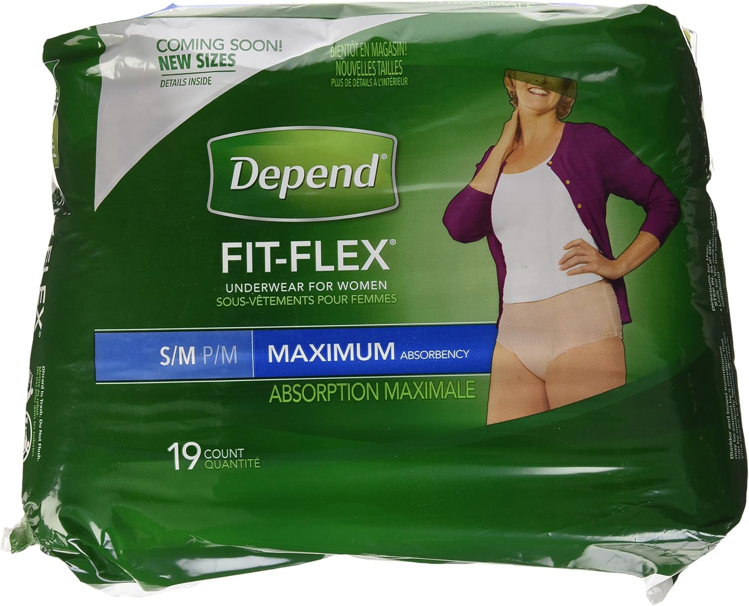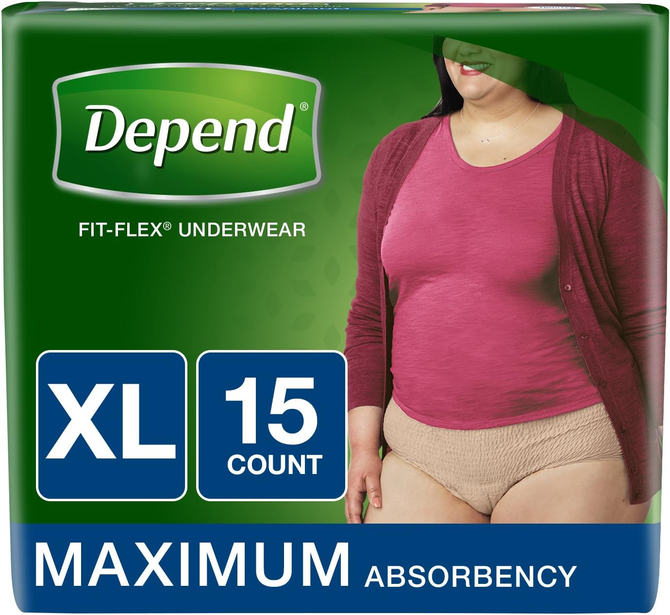 Reclaim and reconnect with what matters most in your life with Depend FIT-FLEX Women’s Incontinence Underwear providing Your Best Comfort and Protection Guaranteed.* Featuring a new beautiful blush color and three new feminine designs, this disposable underwear is ideal for bladder incontinence or postpartum underwear. Extremely soft, yet strong, material instantly locks in wetness and odors, helping to keep you dry and worry-free with Trusted Protection. A comfortable, underwear-like fit - the SureFit waistband helps keep the briefs in place and the form-fitting elastic strands provide a smooth, discreet fit under clothing, unlike bulky adult diapers. Absorbent protective underwear is unscented, soft, quiet and breathable. Depend FIT-FLEX for Women in Maximum Absorbency is available in four sizes - size small (24-30 inch waist), size medium (31-37 inch waist), size large (38-44 inch waist) and size extra-large (45-64 inch waist). Are you new to Depend? Start with Depend for Women in moderate absorbency. Depend incontinence supplies always ship in a discreet box and are FSA-eligible in the U.S. Packaging may vary from images shown. *If you're not completely satisfied with the fit of your Depend, we can help. Purchase by 3/1/21. Mail in by 3/15/21. Online access required. Limit 1 per household. Original receipt/UPC required. Restrictions apply. See www.depend.com/guarantee for details.